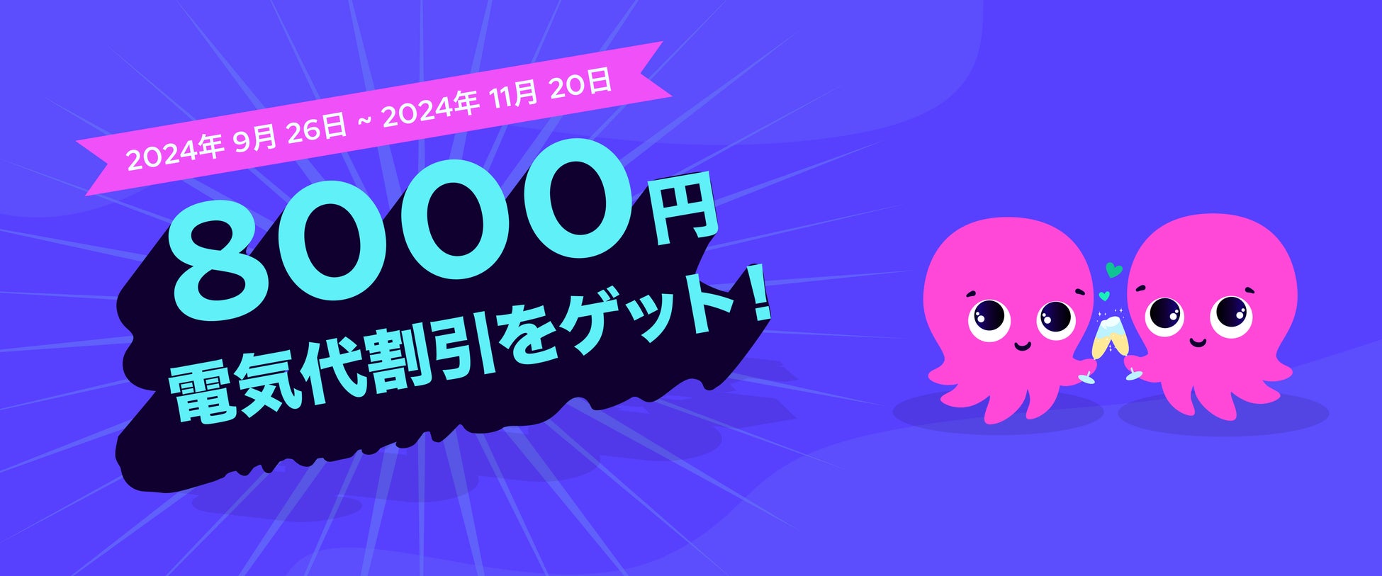 キャンペーン期間中に、オクトパスエナジーご契約者から共有された友達紹介URLを通じて、新規お申し込みをされた方には、それぞれ8,000円分の電気代割引が適用されます。さらに、SNSで紹介URLをシェアすると、豪華賞品が当たるチャンスも!