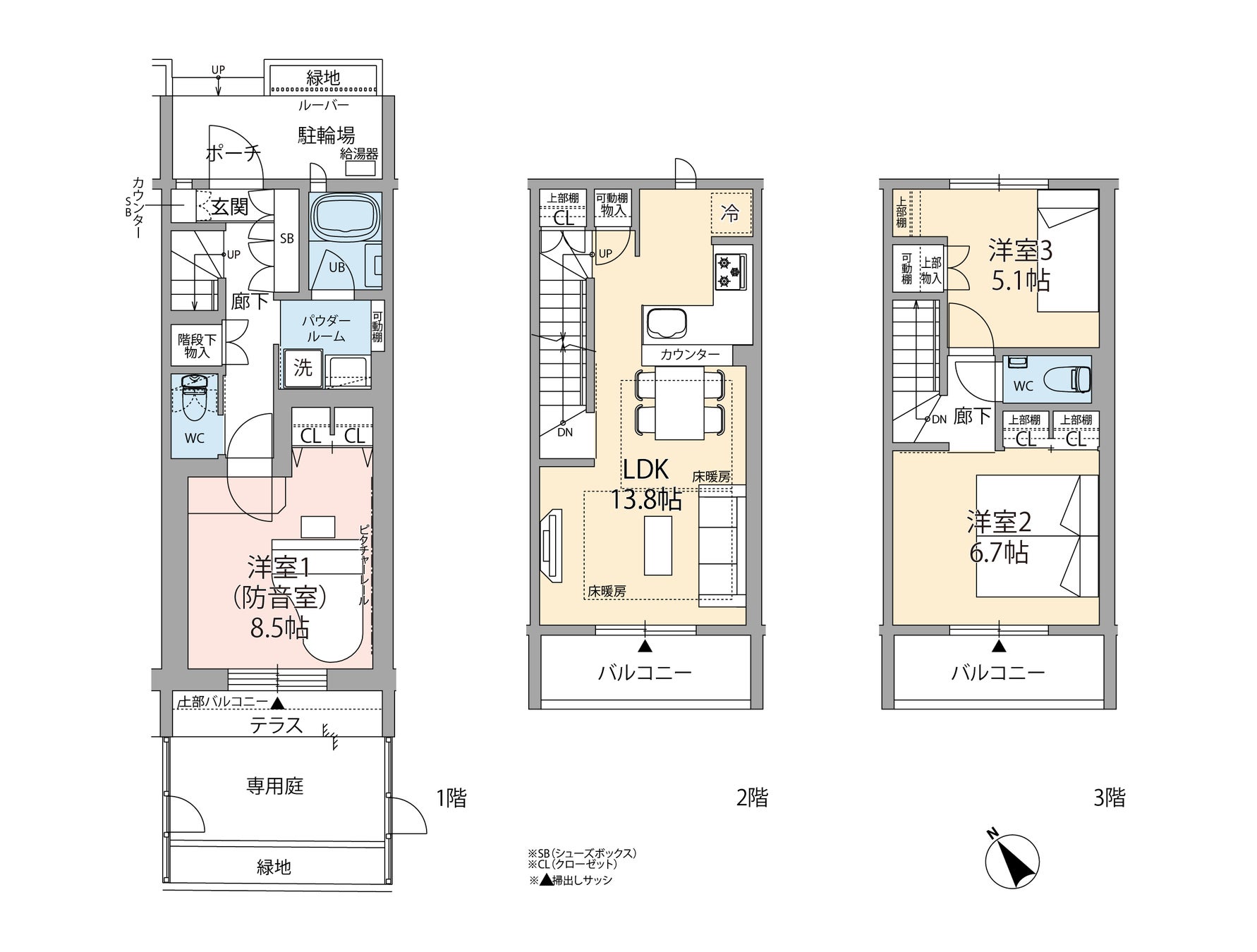・木造3階建て 3LDK 専有面積82.79平方メートル 総戸数6戸(募集対象外住戸1戸)