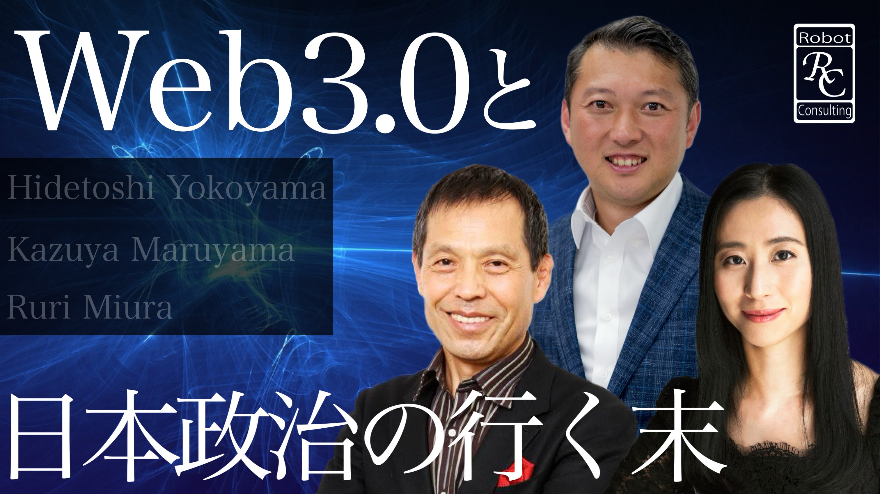 株式会社Robot Consultingの代表横山英俊氏と、弁護士の丸山和也氏および国際政治学者の三浦瑠麗氏が「Web3.0と日本政治の行く末」について対談致しました。