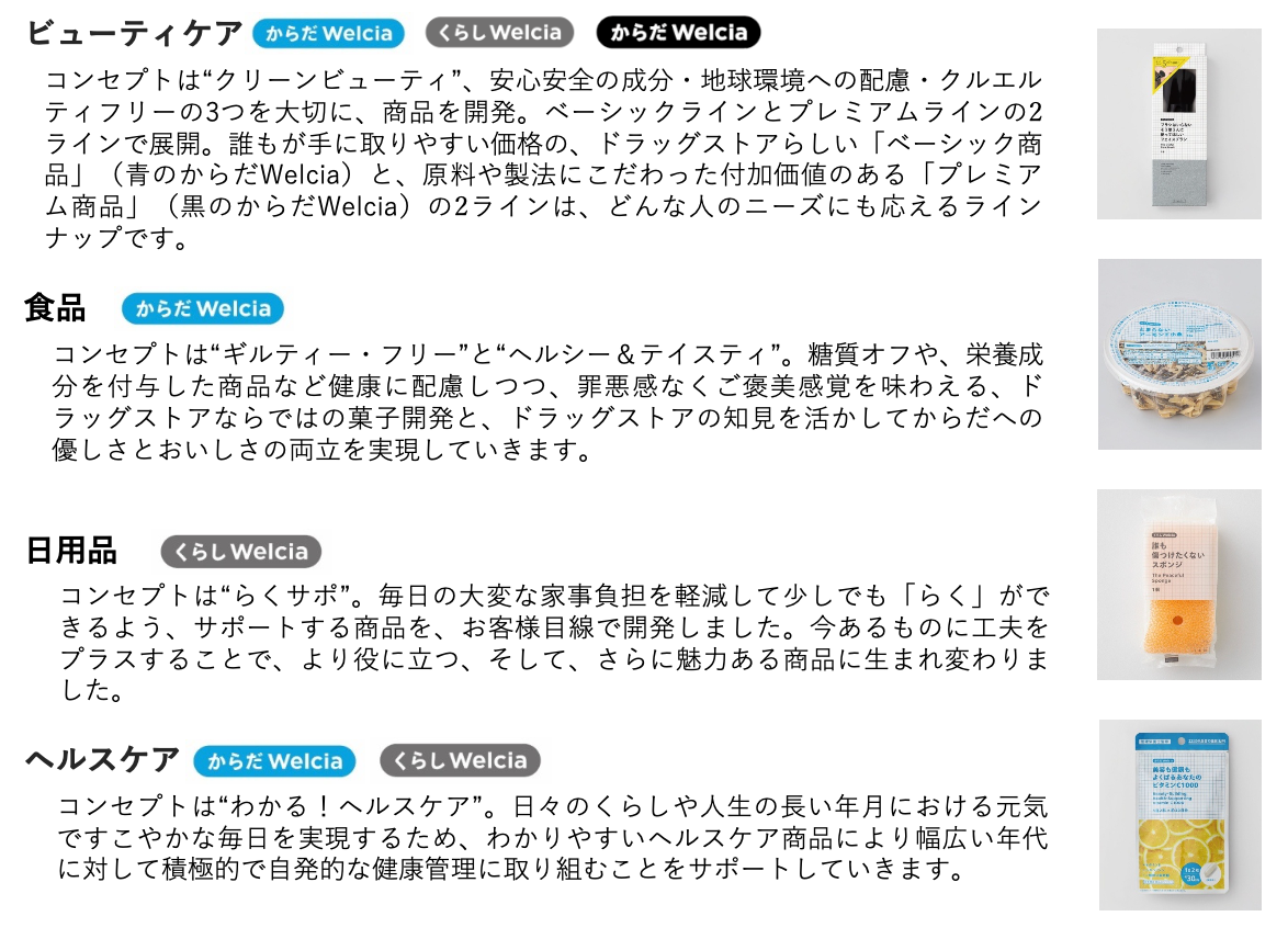 お客様の「当たり前」を超えた、驚きや感動を提供できる商品づくりを目指したいという思いで、「いいものがある。いいひとがいる。いい店だとおもう。」というビジョンのもと、訴求ポイントを明確化した、お客様に寄り添ったプライベートブランド「からだWelcia・くらしWelcia」を立ち上げました。
