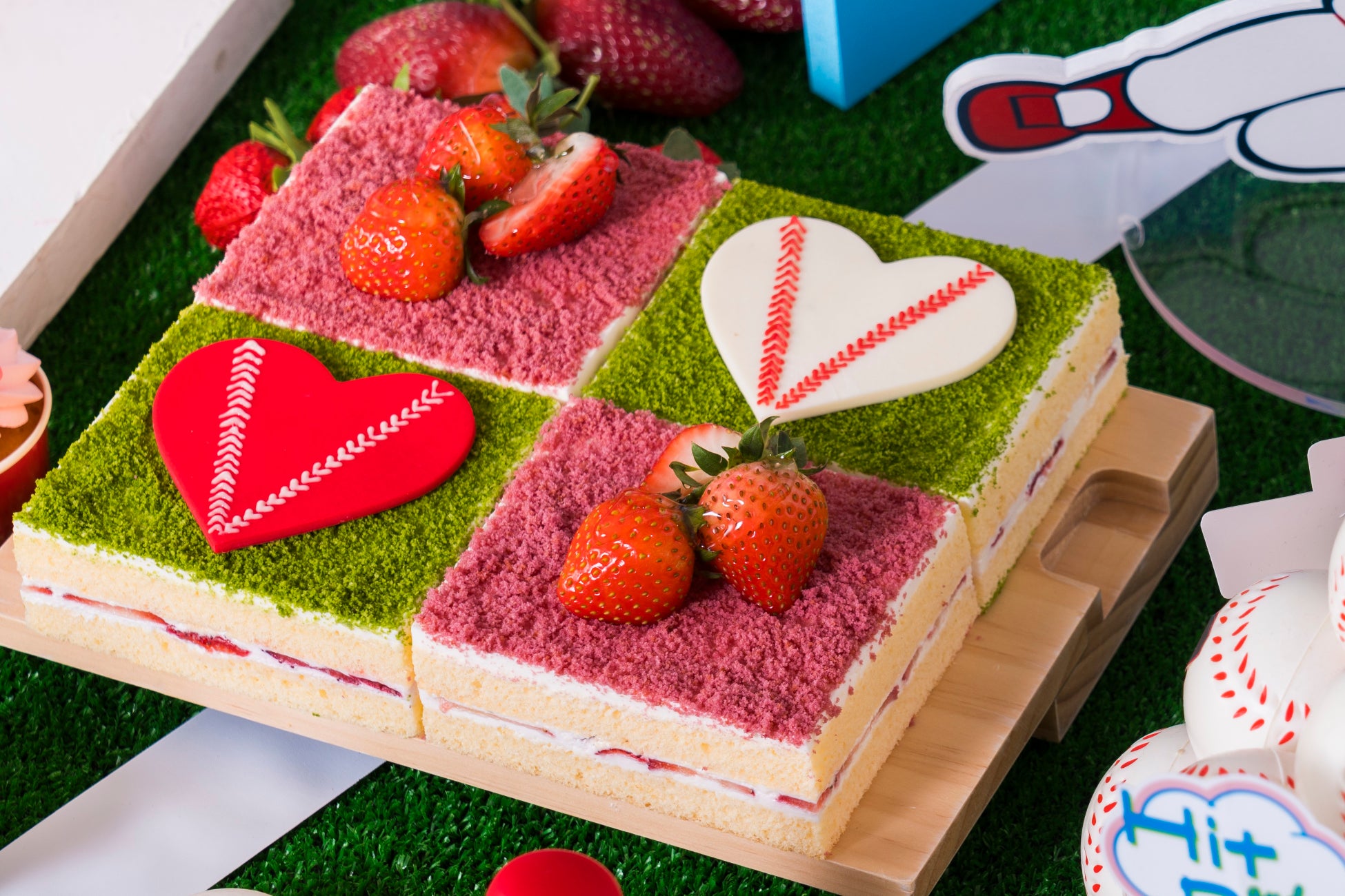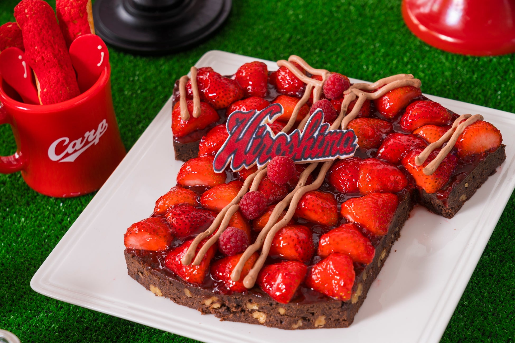 ユニフォーム型の濃厚チョコレートブラウニーの上にフレッシュ苺を贅沢にトッピングした「赤×赤ブラウニー」は、カープの真っ赤なビジターユニフォームを再現したインパクト大の一品。野球ボールを模した赤と白のハート型チョコレートがキュートな「赤ヘルLOVERSショートケーキ」は、ふわふわのスポンジにコアントローを効かせたストロベリーショートケーキの上に、野球グラウンドのようなデコレーションを施し、カープと苺をこよなく愛する気持ちを表現しています。