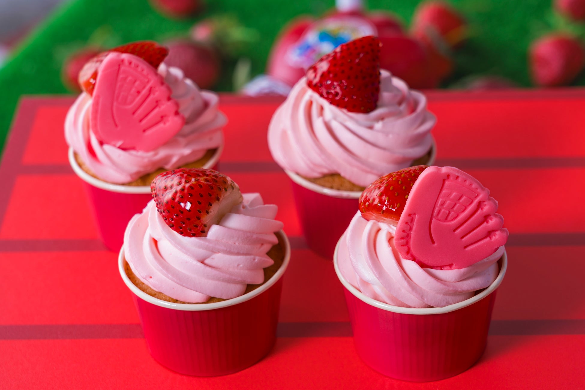 その他にも、フレッシュ苺とチョコレートで勢いよく勝利へ突き進む鯉をイメージした「勝鯉のロールケーキ」に加え、ふわふわのストロベリームースに生クリームとチョコレートパフを乗せて、チームがハッピーな時に現れるピンク色のスラィリー“ハッピースラィリー”の鼻をイメージした「ハッピーピンクムース」、ドライクランベリーを入れて焼き上げたカップケーキに練乳苺風味の生クリームを絞った「ストロベリーキャッチボール」など、スモールポーションのスイーツもお楽しみいただけます。
