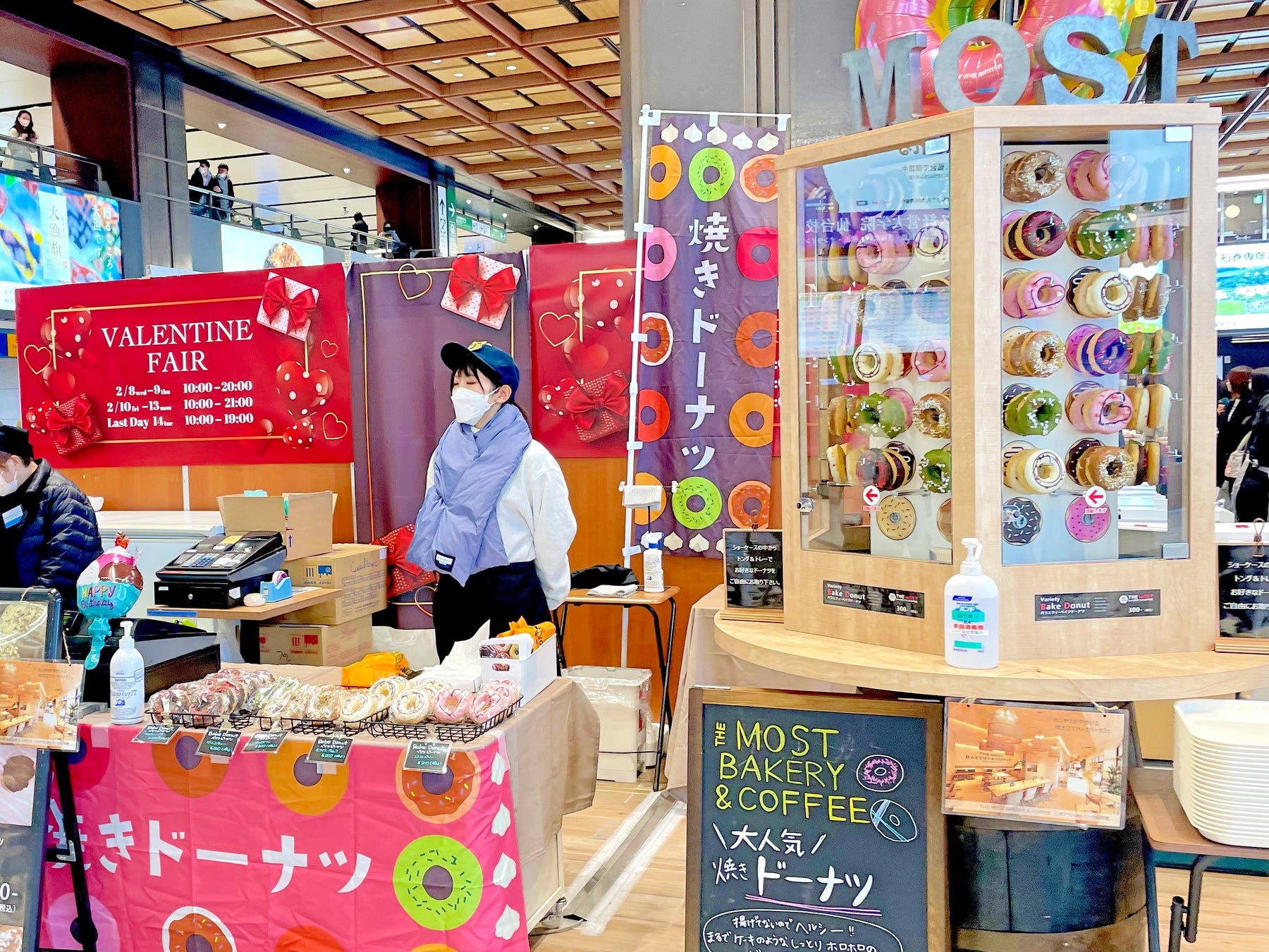 仙台駅2Fのバレンタイン催事場にドーナツタワーが出現!THE MOST BAKERY & COFFEEのファンシーな特製カラフルチョコドーナツに思わずうっとり・・・。
