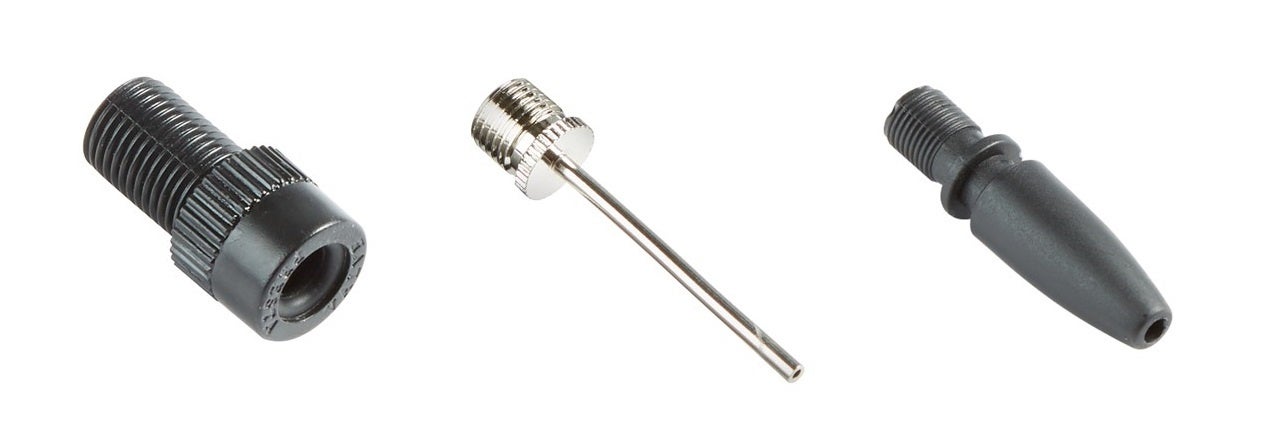 米式バルブに対応の92cmのホースと、仏式バルブ、ボール用アダプター、浮き輪等に対応したアダプターを本体に付属
