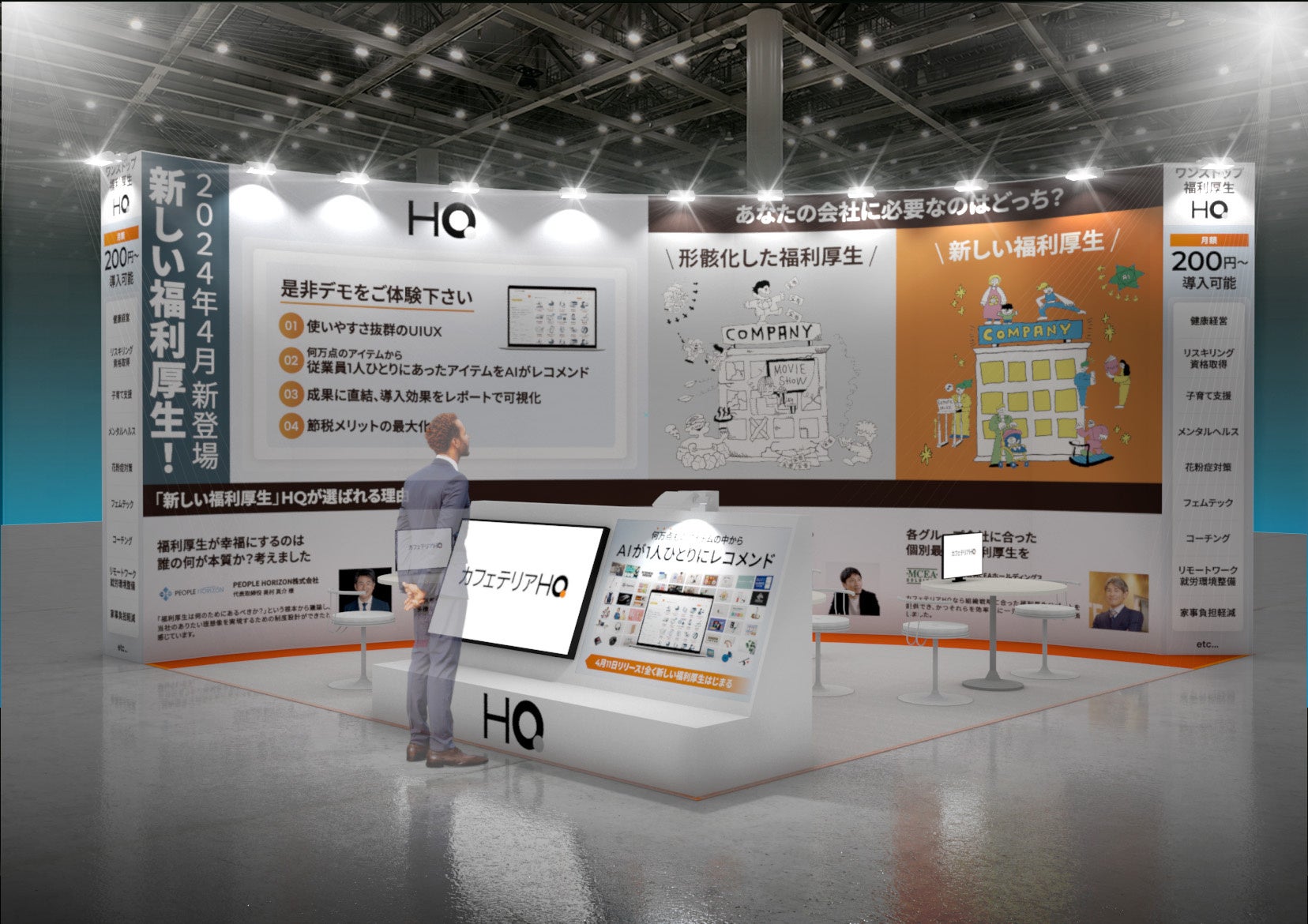 出展期間中は、国内初・AIを活用した福利厚生プラットフォーム「カフェテリアHQ」(https://hq-hq.co.jp/cafeteria)のデモを展示します。