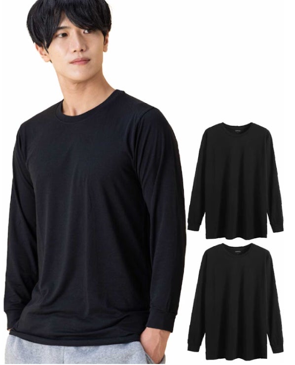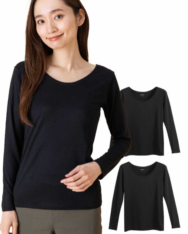 レディース 2枚組 長袖Uネック