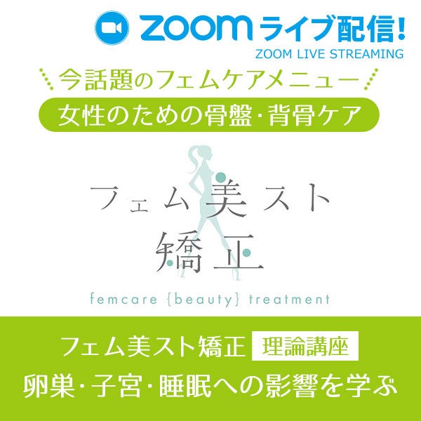 「骨盤の歪みと卵巣・子宮への影響」と「背骨の歪みと睡眠への影響」について学べる、女性の身体の歪みに特化した矯正メニュー「フェム美スト矯正」の理論講座