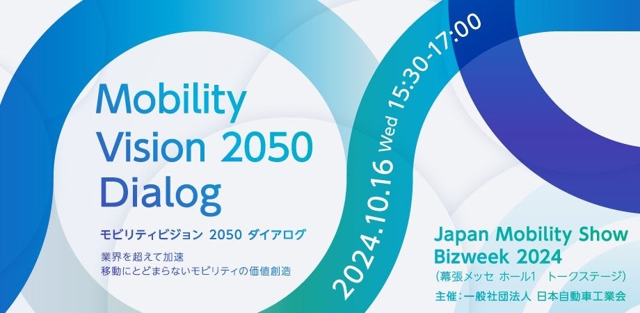 日本自動車工業会は、昨年も実施した、“モビリティビジョン2050(中長期モビリティビジョン)”に関するダイアログセッションを本年も開催いたします。2回目の今回は、モビリティ社会の将来に向けた情報発信の位置づけとして、「CEATEC 2024」と併催となる「Japan Mobility Show Bizweek 2024」のプログラムの一つとして実施いたします。「“モビリティビジョン2050”ダイアログ ~業界を超えて加速 移動にとどまらないモビリティの価値創造~」をテーマとして、ビジョン内で描かれる移動を超えたモビリティの価値創造の現況を、観光と移動産(キッチンカーなど)を例に協創パートナーの皆様と共に紹介いたします(参加無料・事前登録制)。