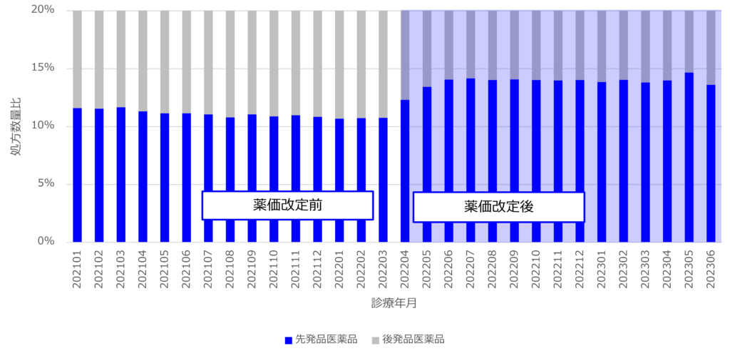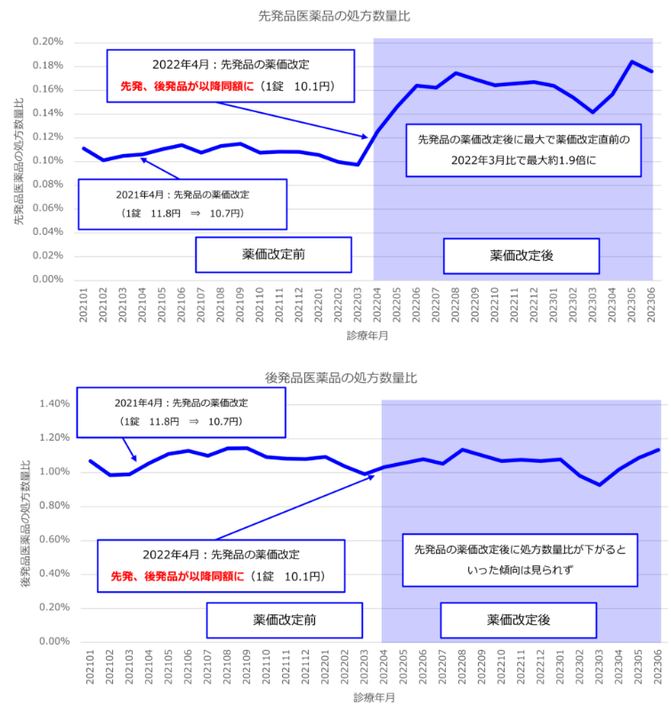 対象期間 :薬価改定前(2021年1月‐2022年3月)、薬価改定後(2022年4月‐2023年6月)