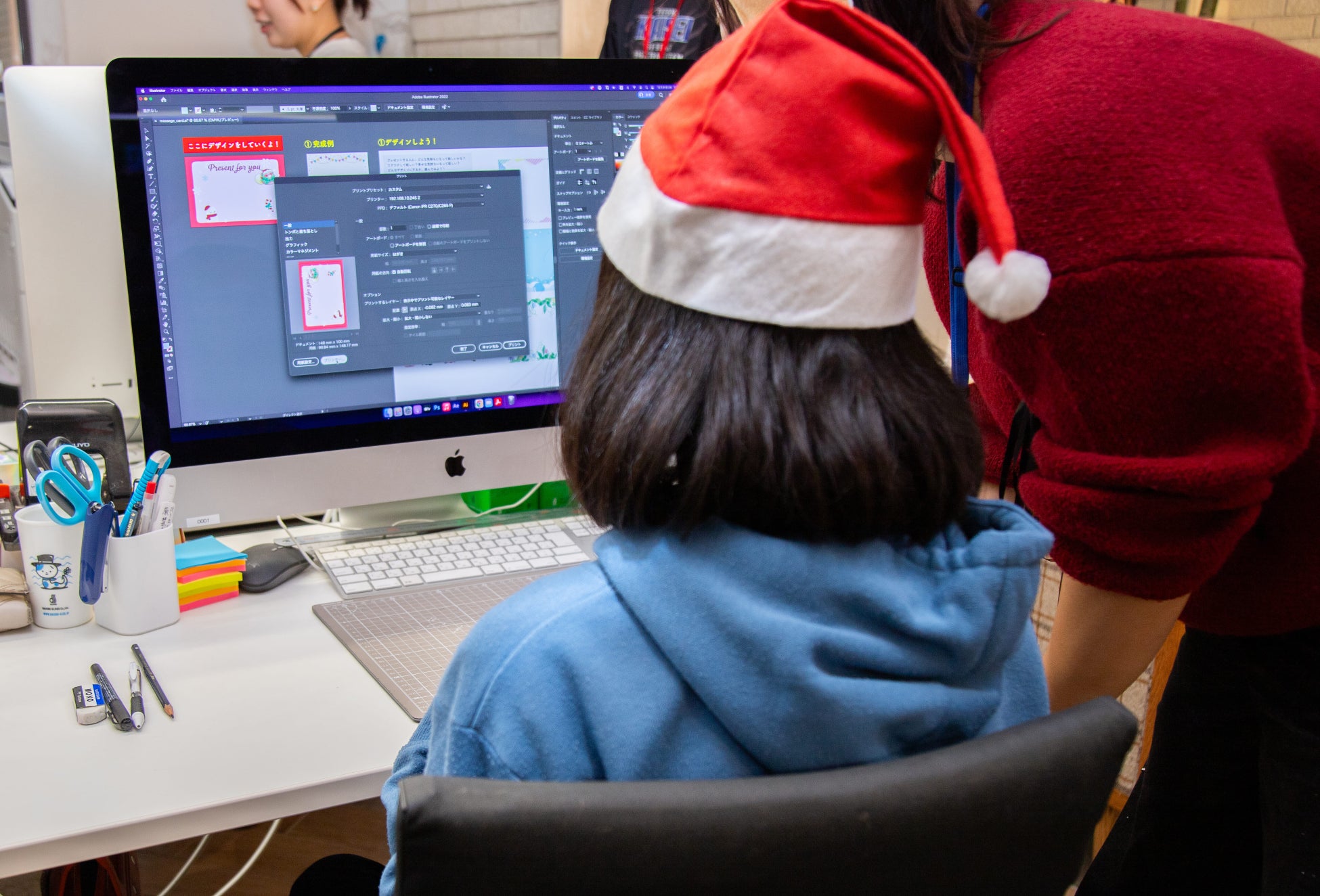 イラストレーターの仕事に興味がある子には「届けたい相手がどうしたら喜んでくれるかを意識すると、より伝わる形になって、たくさんの人の心を動かすデザインができるんだよ」と伝える場面も。