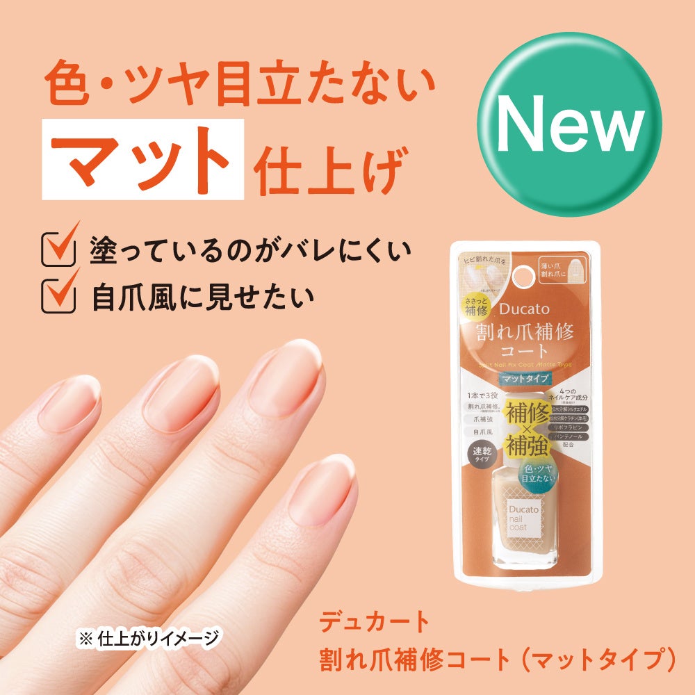 【デュカート】爪のひび割れを補修する「割れ爪補修コート」に色とツヤが目立たない<マットタイプ>が1月1日新発売。
