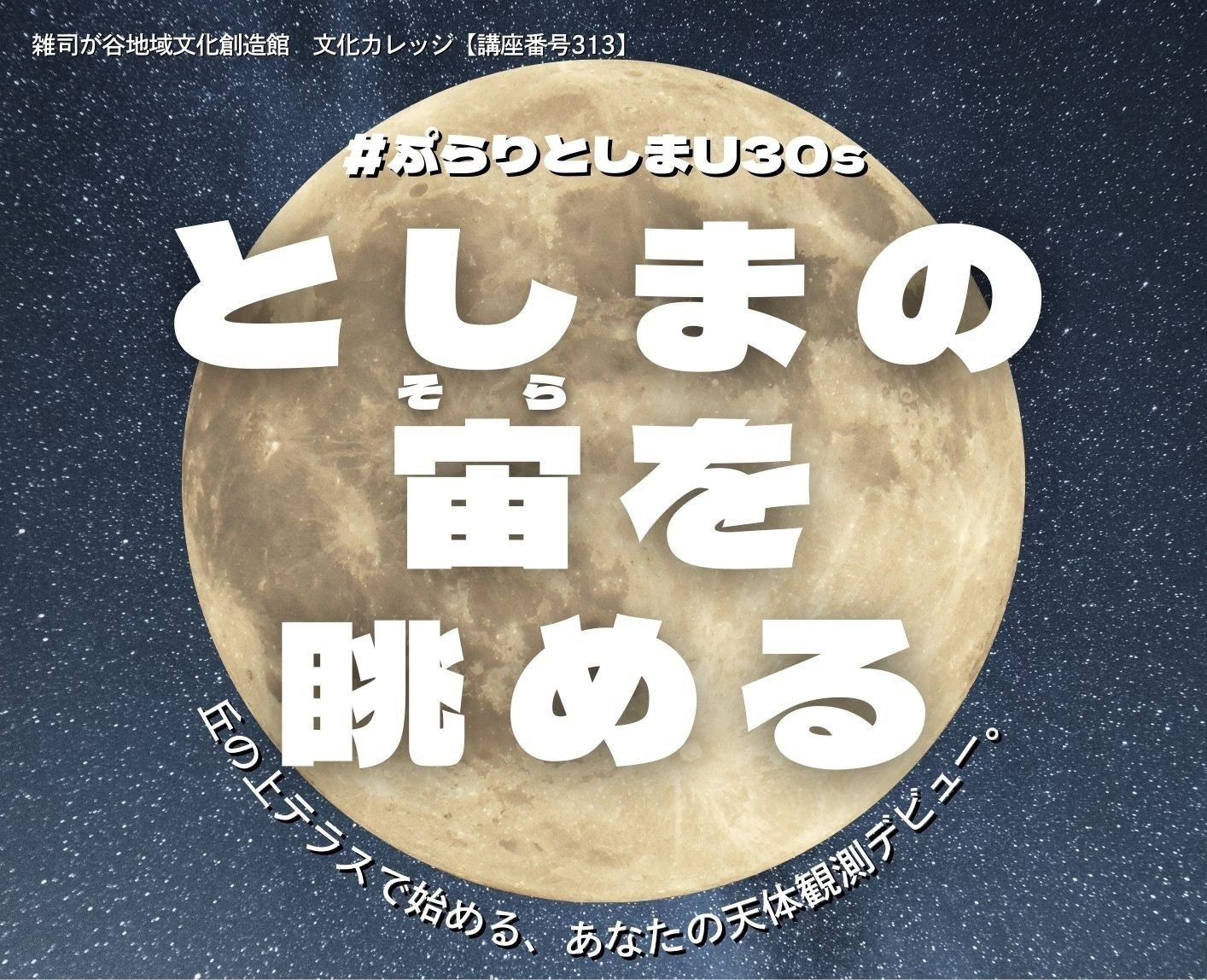 公益財団法人としま未来文化財団(所在地:東京都豊島区、理事長:合場直人)は、令和8年2月4日(水)に、若い世代を対象とした天体観測講座「#ぷらりとしまU30s としまの宙(そら)を眺める」を開催します。