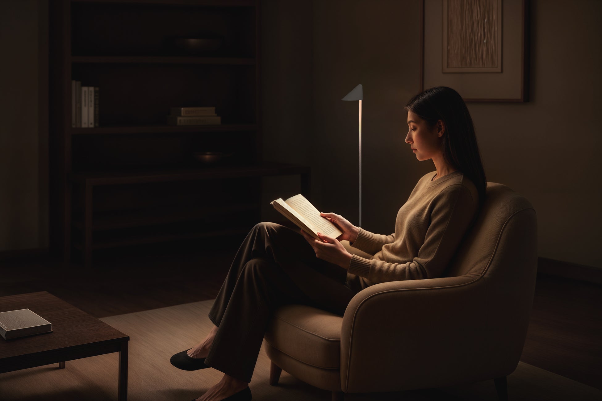 思いに耽ったり、熟考したり──個の時間に寄り添い、内省と没頭を静かに支える、全く新しい灯りです。