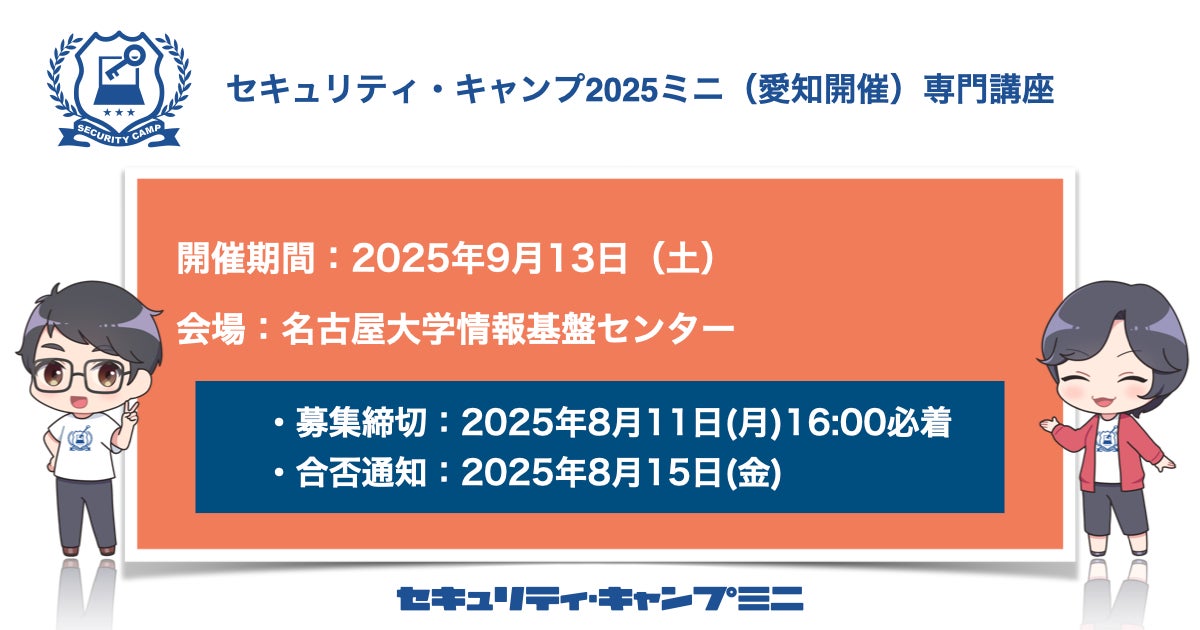 イベント詳細:https://www.security-camp.or.jp/minicamp/aichi2025.html