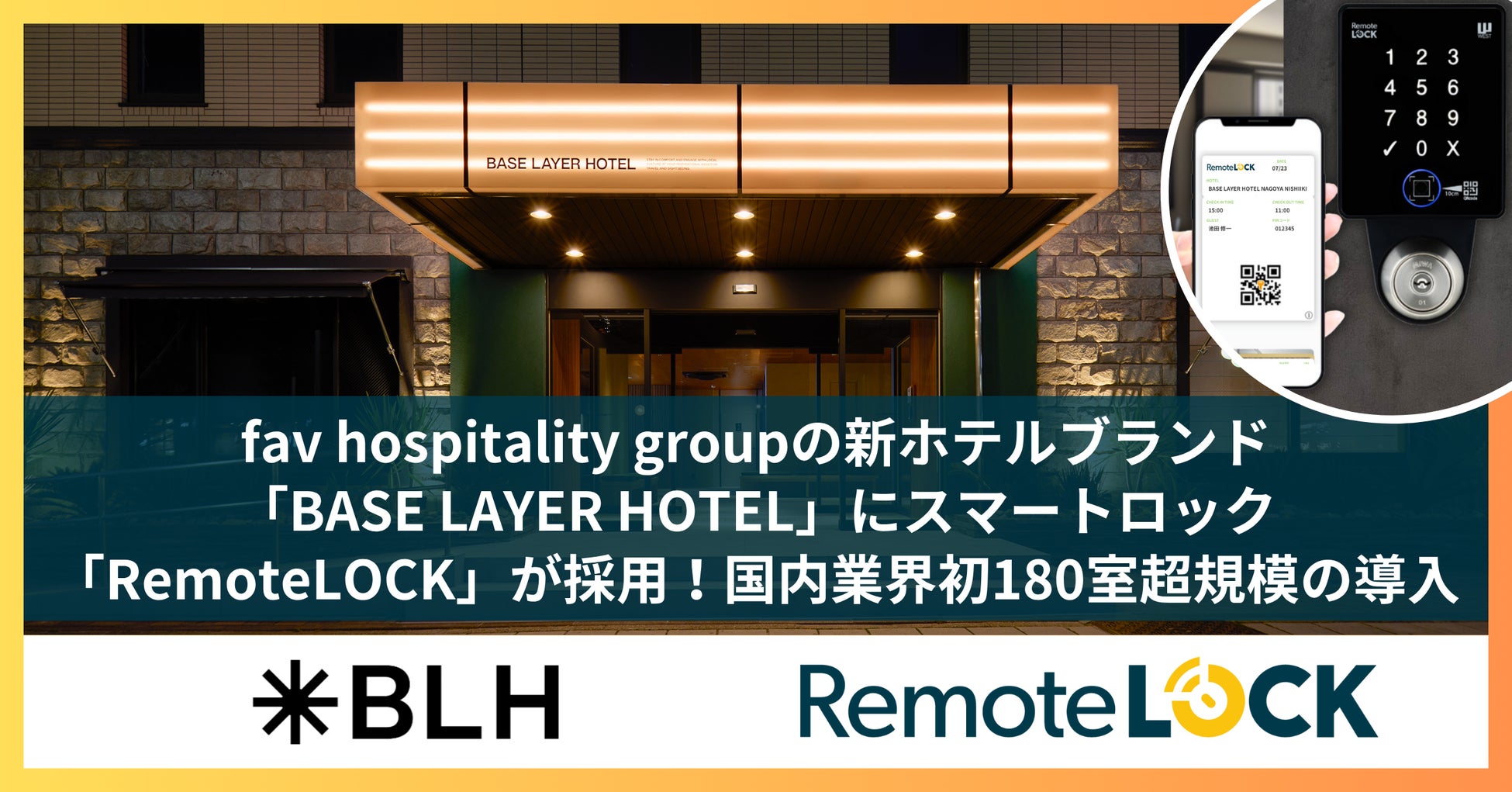 スマートロック「RemoteLOCK(リモートロック)」が、霞ヶ関キャピタル株式会社(本社:東京都千代田区、代表取締役:河本幸士郎)のグループであるfav hospitality group株式会社(本社:東京都千代田区、代表取締役:緒方秀和、以下「FHG」)がプロデュースする新ビジネスホテルブランド「BASE LAYER HOTEL」に採用され、初拠点「BASE LAYER HOTEL NAGOYA NISHIKI」の全188室へ導入されました。180室を超える国内ビジネスホテルへの導入はスマートロック業界初の試み※₁であり、今後は大規模ホテルでのスマートロック導入による顧客体験向上と省人化・コスト削減への高い有効性を実証し、ホテル運営の新たなスタンダードとして普及を目指します。