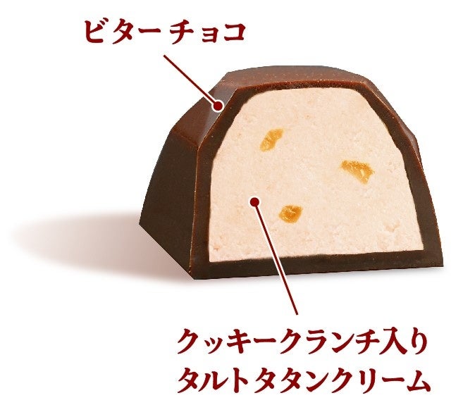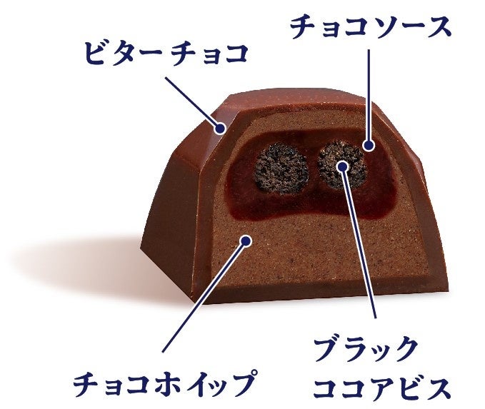・ブラックココアビスケットとチョコソース、チョコホイップをビターチョコで包み、ザッハトルテをイメージした大粒チョコレート