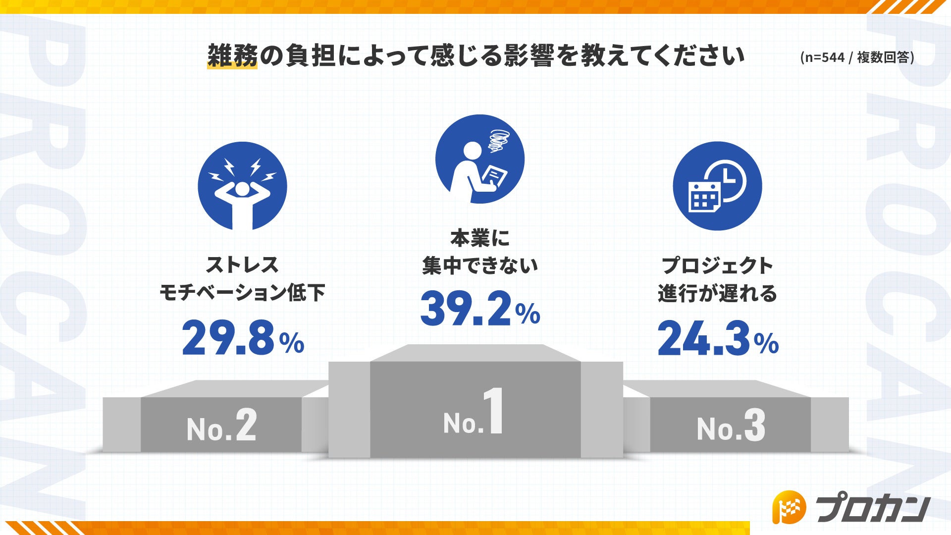 雑務の影響として「集中できない」「残業増」生産性とモチベーションを奪う