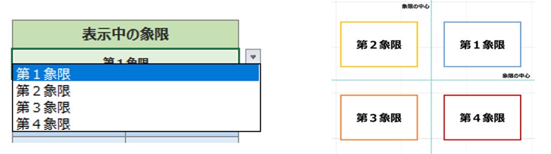 散布図シートの四象限から一つ選択して更に深堀りができるシート