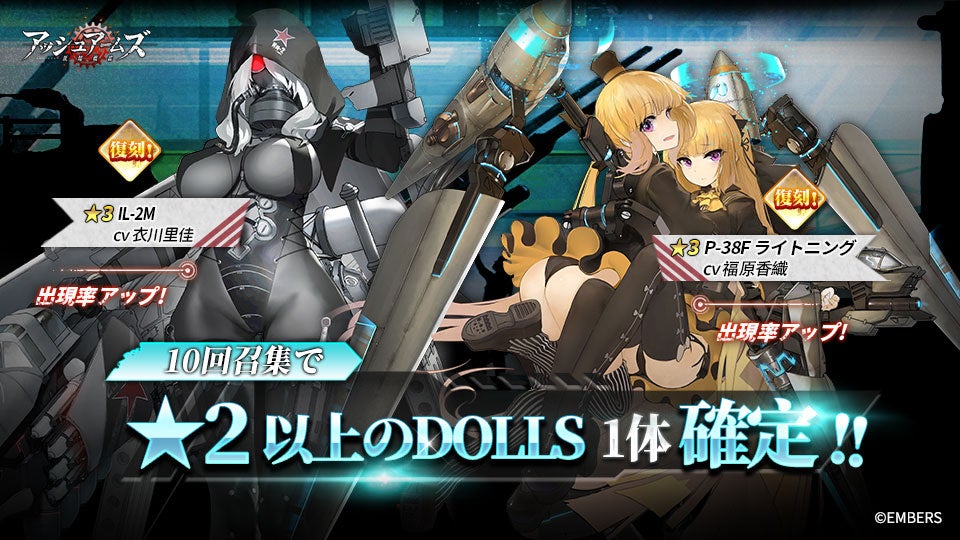 有料結晶石限定で10回の召集を行い、そのうち☆3 DOLLSが1体以上確定で出現します。