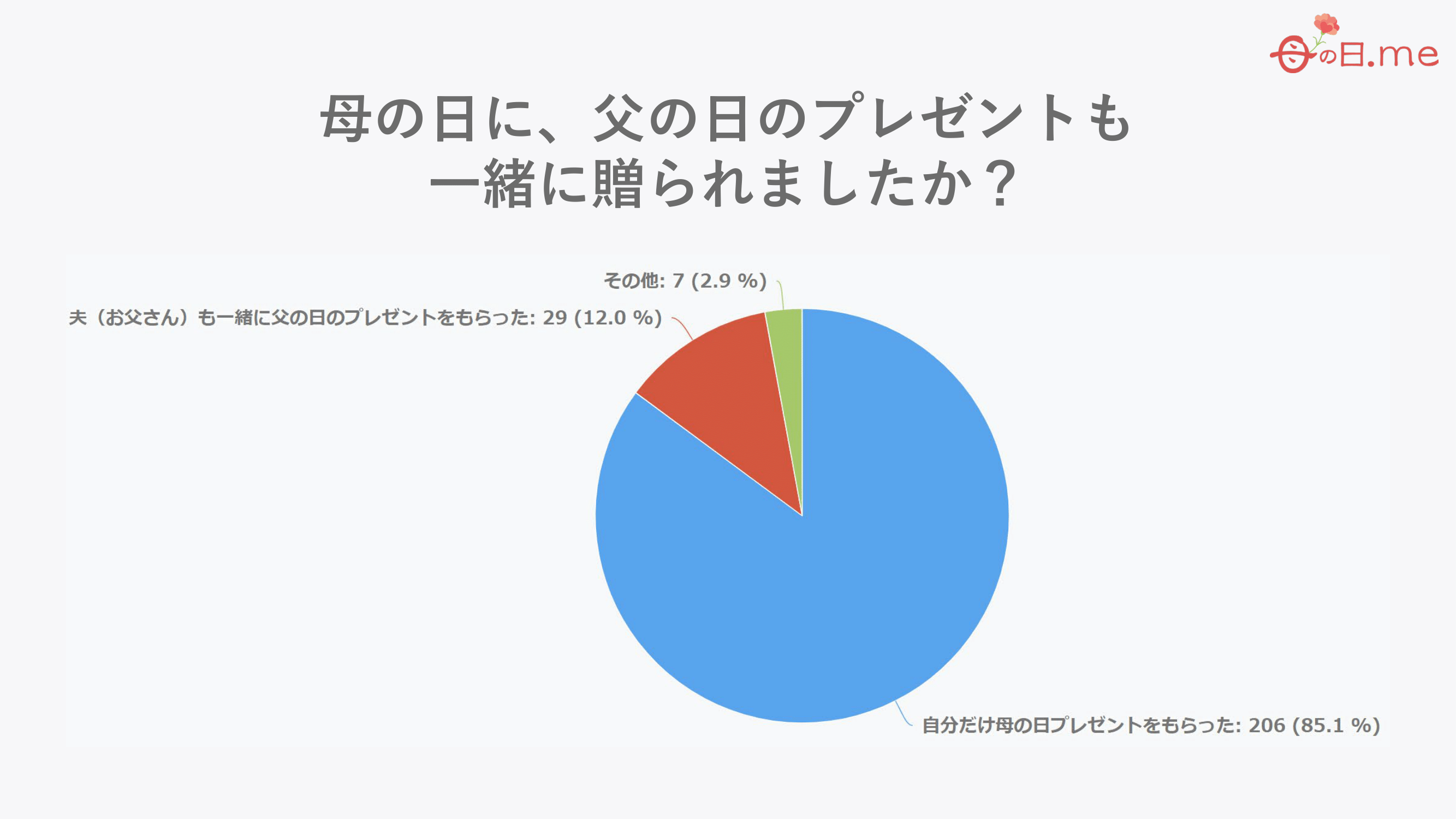 質問:母の日にお父さんへのプレゼントも一緒に渡しましたか?に対する回答結果