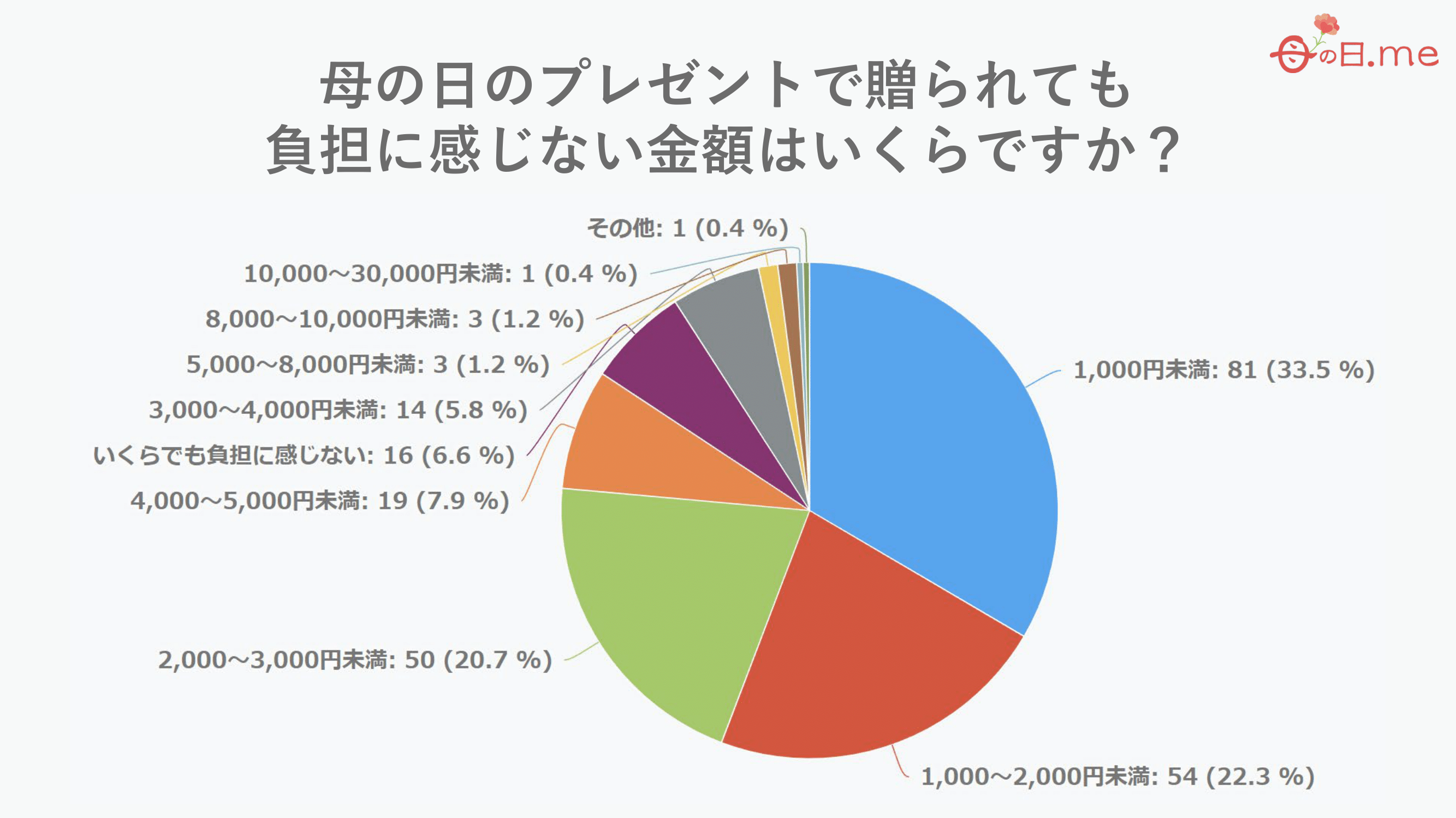 2023年 母の日後の調査:今年の母の日ギフトにかけた予算はいくらですか? 回答結果