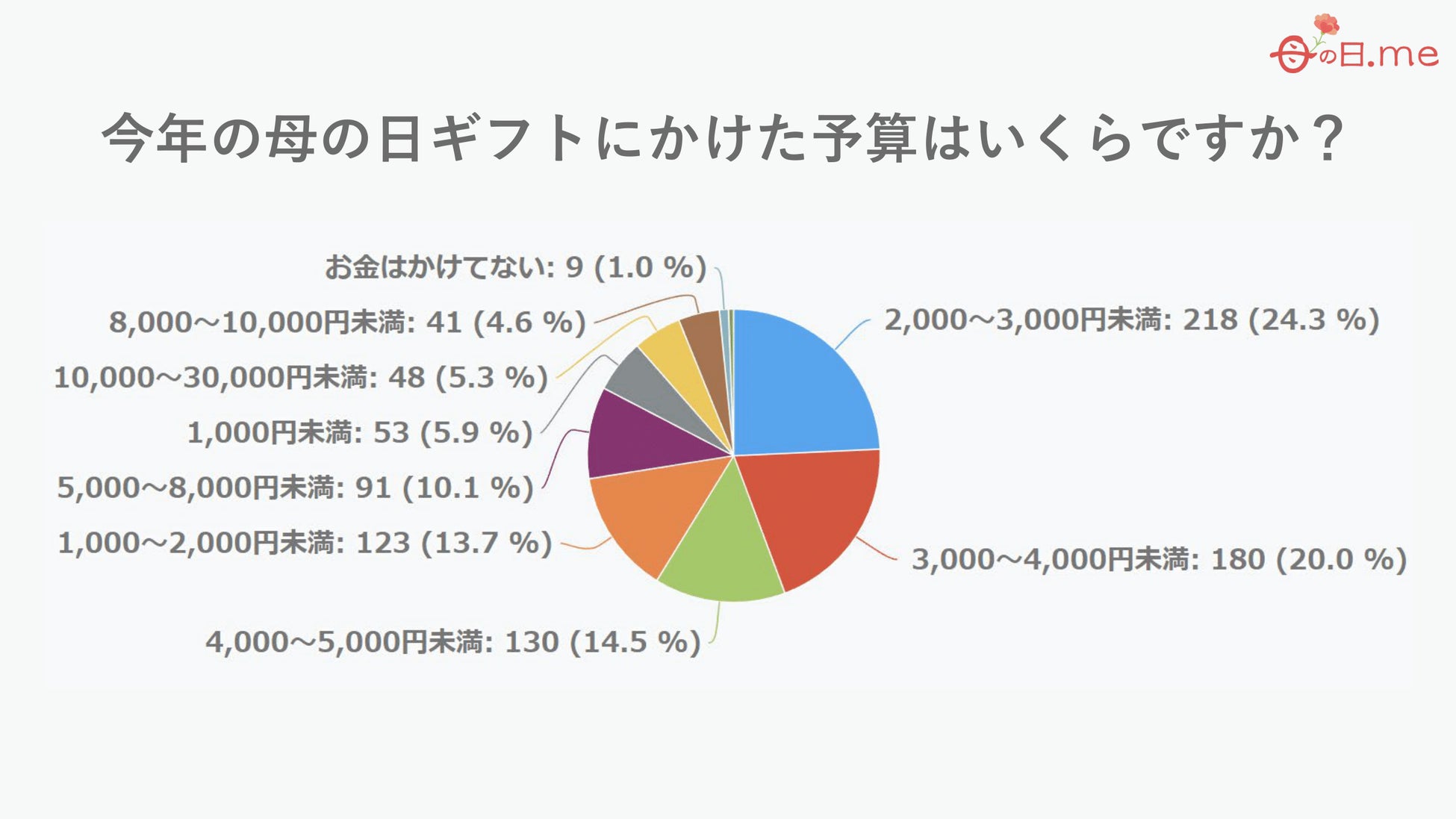 一番多かった母の日ギフトの予算は2,000~3,000円。母の日前の事前調査より予算相場が落ち込む結果に。