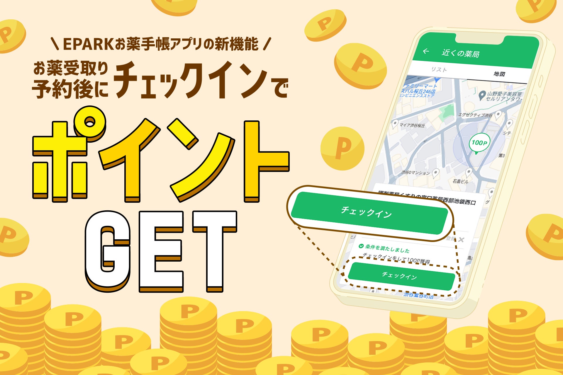電子版お薬手帳「EPARKお薬手帳」にチェックイン(お薬受け取り店舗への到着確認)機能が追加リリース!機能利用でポイントが貯まります