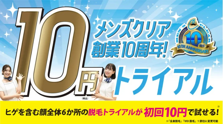 創業10周年を記念し「ヒゲ脱毛10円トライアル」キャンペーン開催中!