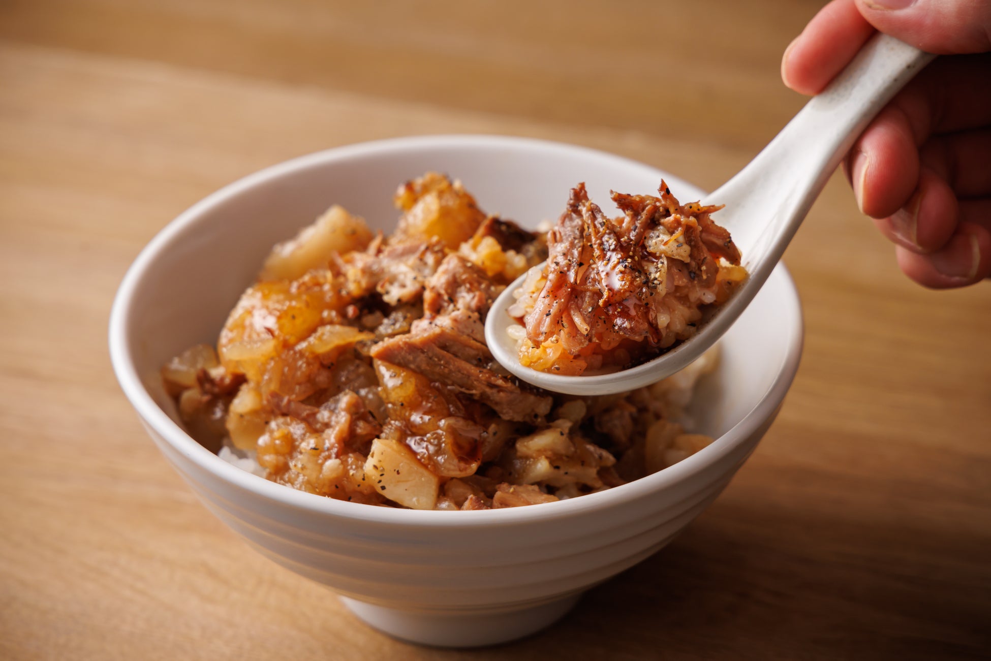 ジューシーな豚チャーシューが贅沢にトッピングされた、香り高いご飯メニュー!柔らかく煮込んだチャーシューは濃厚な旨味とともにほのかな甘みが広がり、炊き立てのふっくらご飯との相性抜群です。
