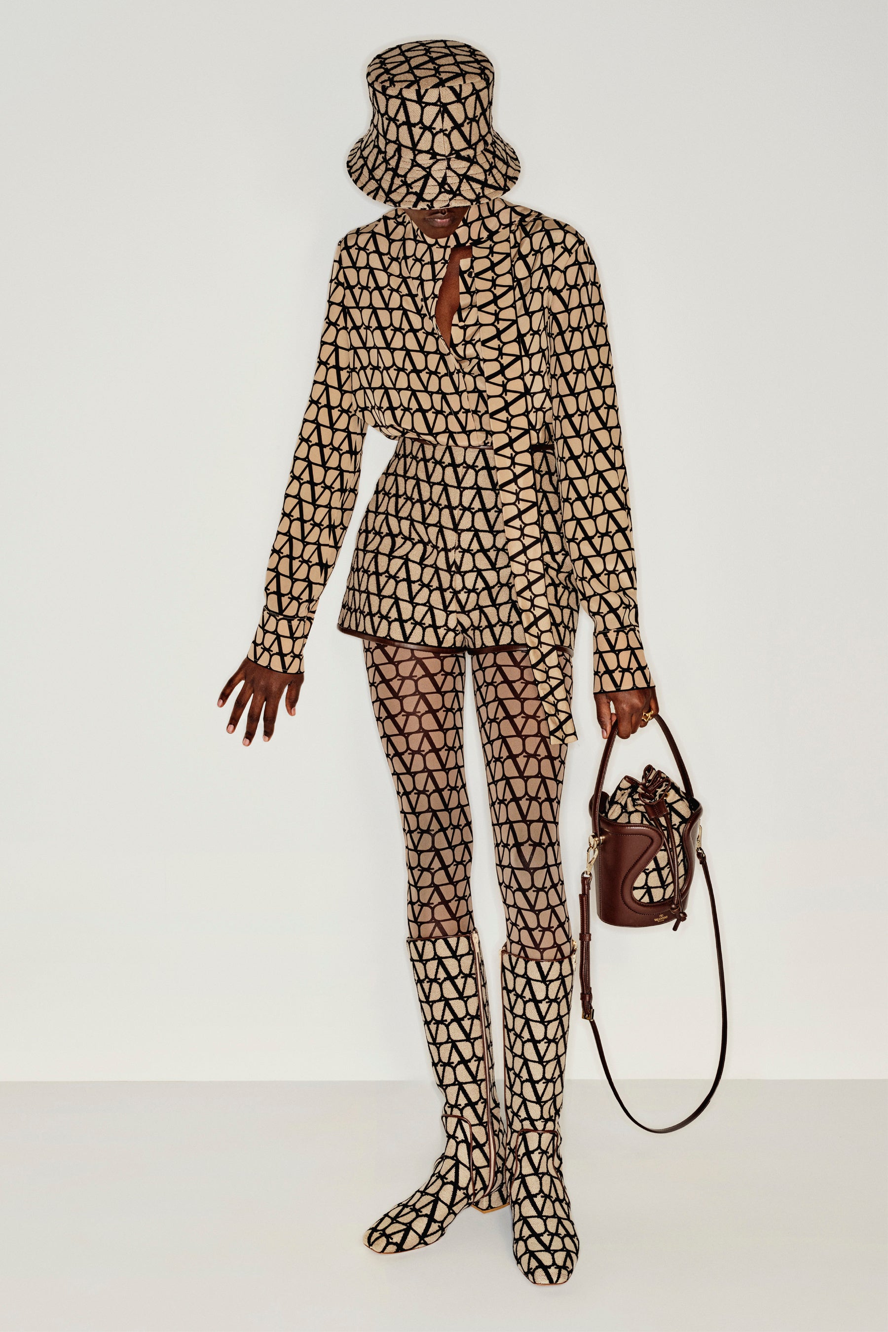 トワル イコノグラフは、アイコニックなVロゴを連続で配した、クリエイティブディレクター ピエールパオロ・ピッチョーリが手掛ける初めてのモノグラムパターンです。Vロゴは、ローマのヴァレンティノ本社が入った歴史的な建造物、Palazzo Mignanelliに、1960年の創業時より掲げられているヴァレンティノのアイコンです。トワル イコノグラフは、ピエールパオロが2016年から継続している、ヴァレンティノのメゾンのコードを再定義するデザインプロセスの一環として、ロゴを新たに解釈しデザインされました。