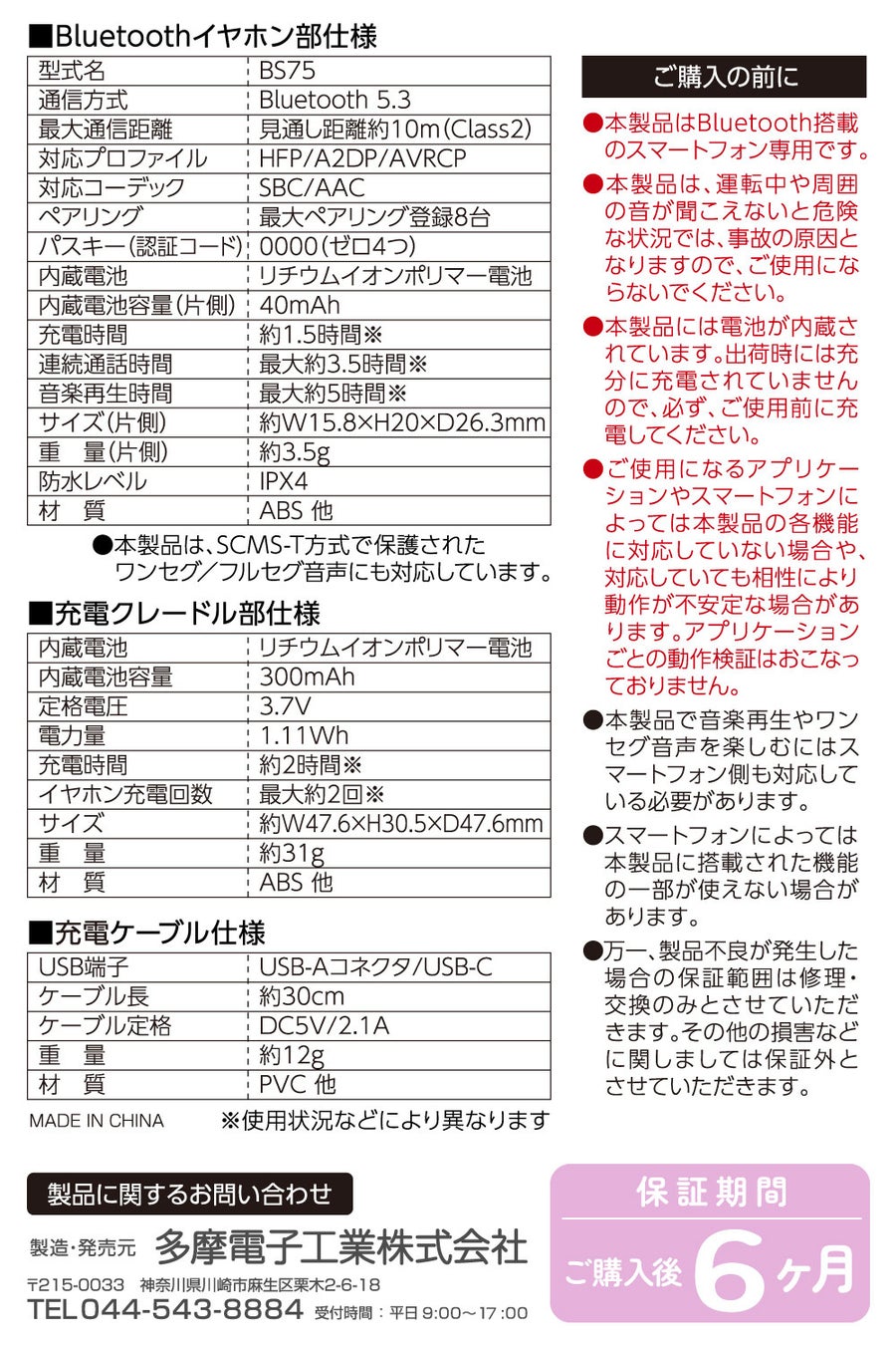 ■らぶいーず完全ワイヤレスイヤホン「LVE-BS75P」 製品特長