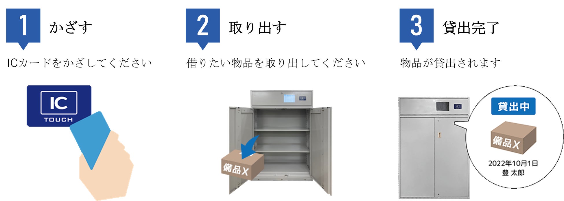 貸出・返却を自動認識することにより 画面操作をすることなく、簡単に物品の貸出・返却ができます。