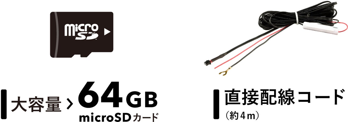 今回発売の4機種は、市場ニーズの高い「大容量 64GB microSDカード」および「直接配線コード」を標準付属品としました。※2