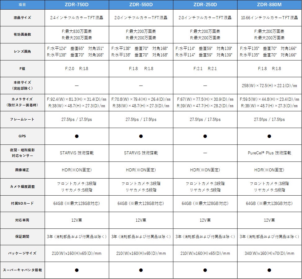 ドライブレコーダー国内販売数量No.1※1を誇る、株式会社コムテック(本社:愛知県愛知郡東郷町、代表取締役:大川晋悟、以下コムテック)は、「ZDR-750D」「ZDR-550D」「ZDR-250D」「ZDR-880M」を4月10日(金)に発売します。