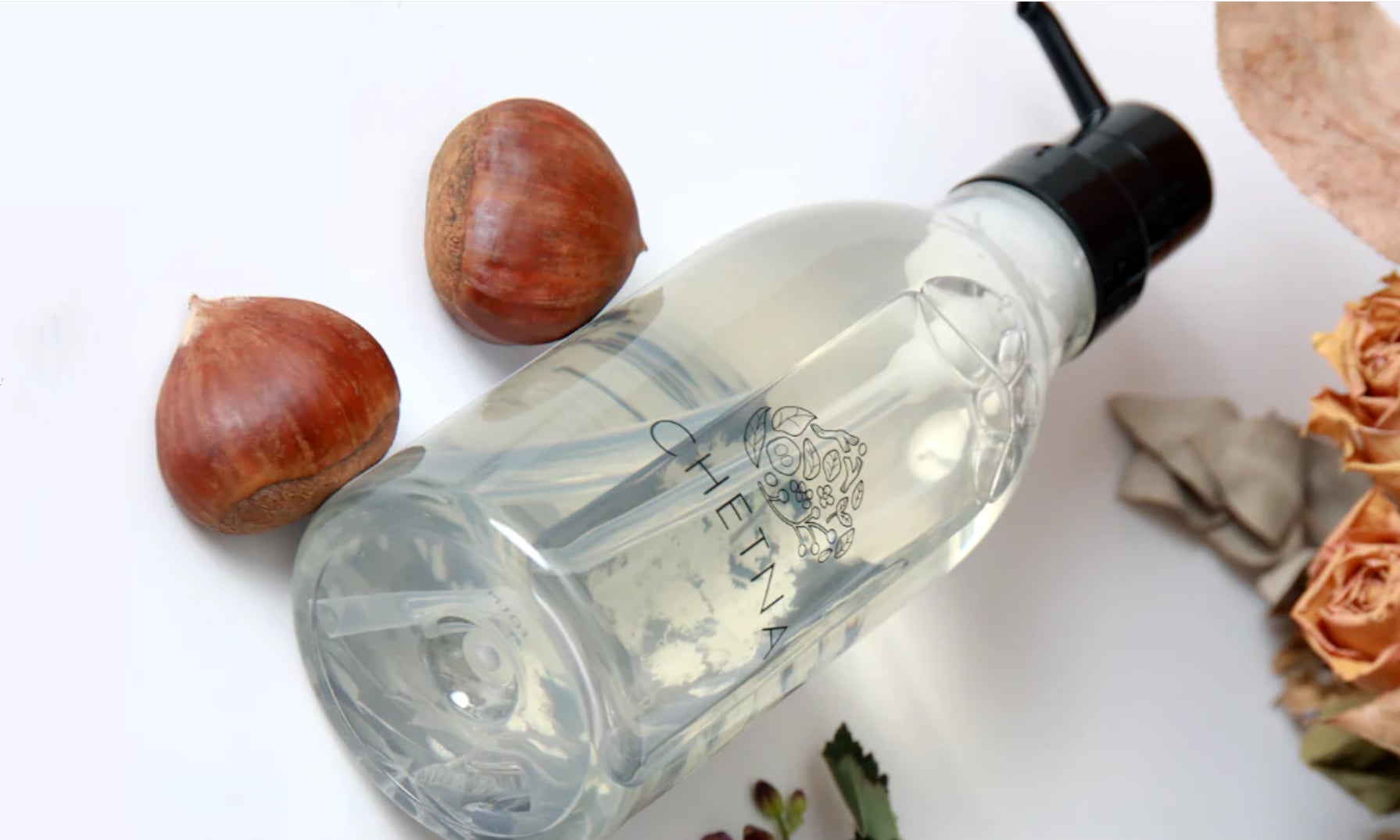 新杵堂の主力商品である栗きんとんは多くのお客様にお求めいただいております。栗きんとんをはじめとした栗菓子の製造過程にて、年間200トン(2023年度実績)もの栗の皮が廃棄物として発生していた点を課題ととらえ、SDGsの観点からもこれらの栗皮の再利用に取り組み、2022年に化粧品ブラント「Chetna(シェトナ)」を立ち上げました。これまでもシャンプーやリンスのほかに、コラーゲンゼリーやスキンケア商品を販売してまいりました。