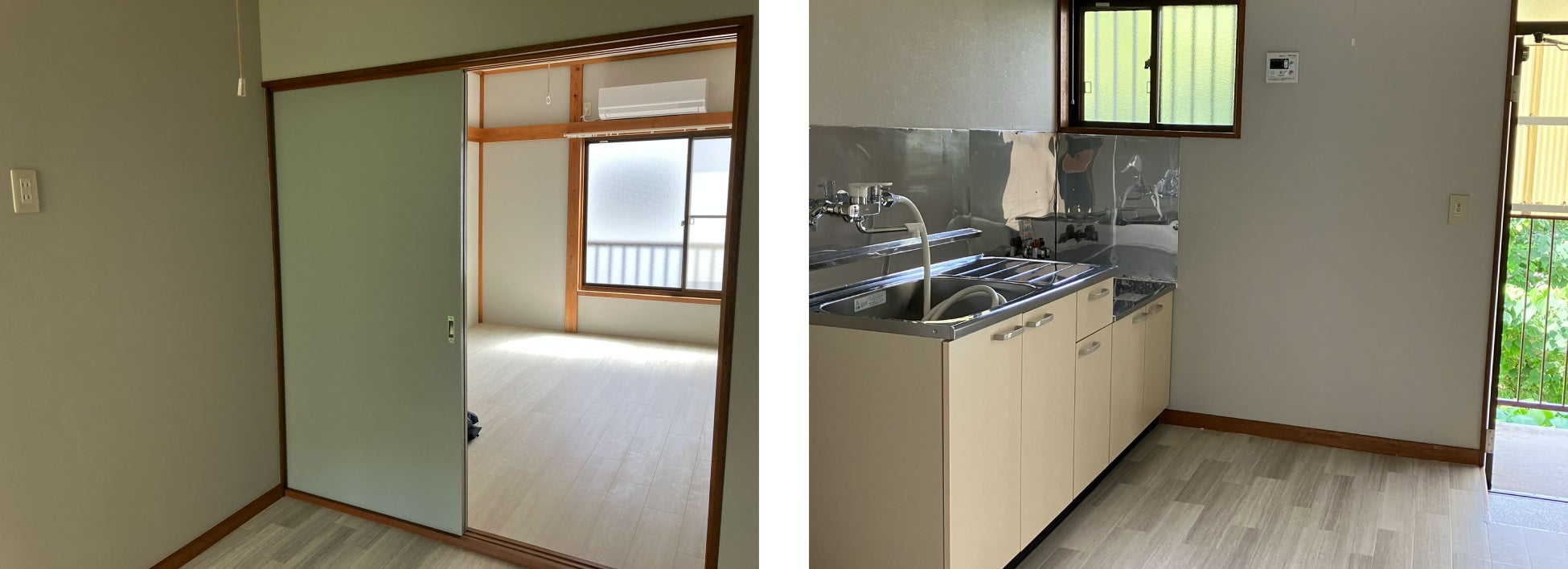 本プロジェクトは『中古物件の再生』をテーマに、既存建物の構造を活かしながらも、設備・内装を全面的に刷新。給湯器の交換やモニター付きインターホンの設置、畳をクッションフロアへ変更し、クロスを張り替えるなど、設備と内装を一新しました。