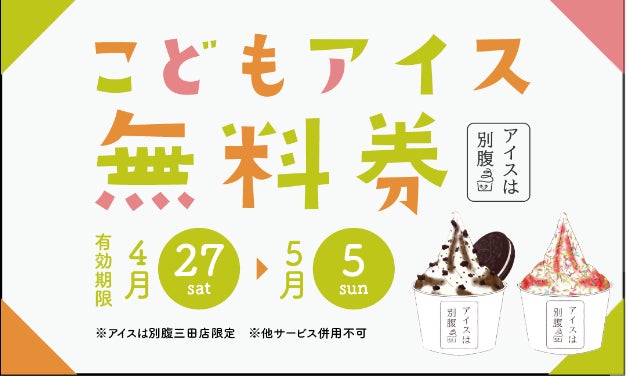 アイスは別腹三田店 GW期間限定特別企画三田市の保育園に「こどもアイス・無料券」 1000枚配布!GW期間中は「アイスは別腹三田店」に子供大集合!!