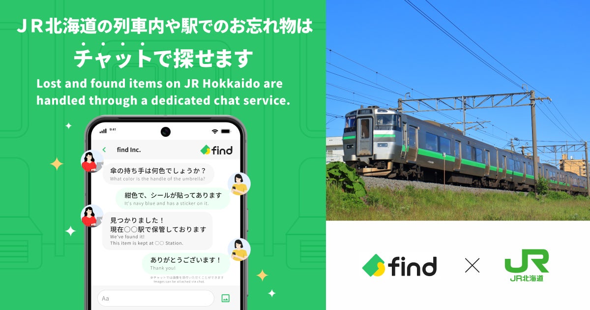 北海道旅客鉄道株式会社(本社:北海道札幌市、代表取締役社長:綿貫 泰之、以下「JR北海道」)は、株式会社find(本社:東京都港区、代表取締役CEO:高島 彬、以下「find」)が提供する「落とし物クラウドfind」を導入します。