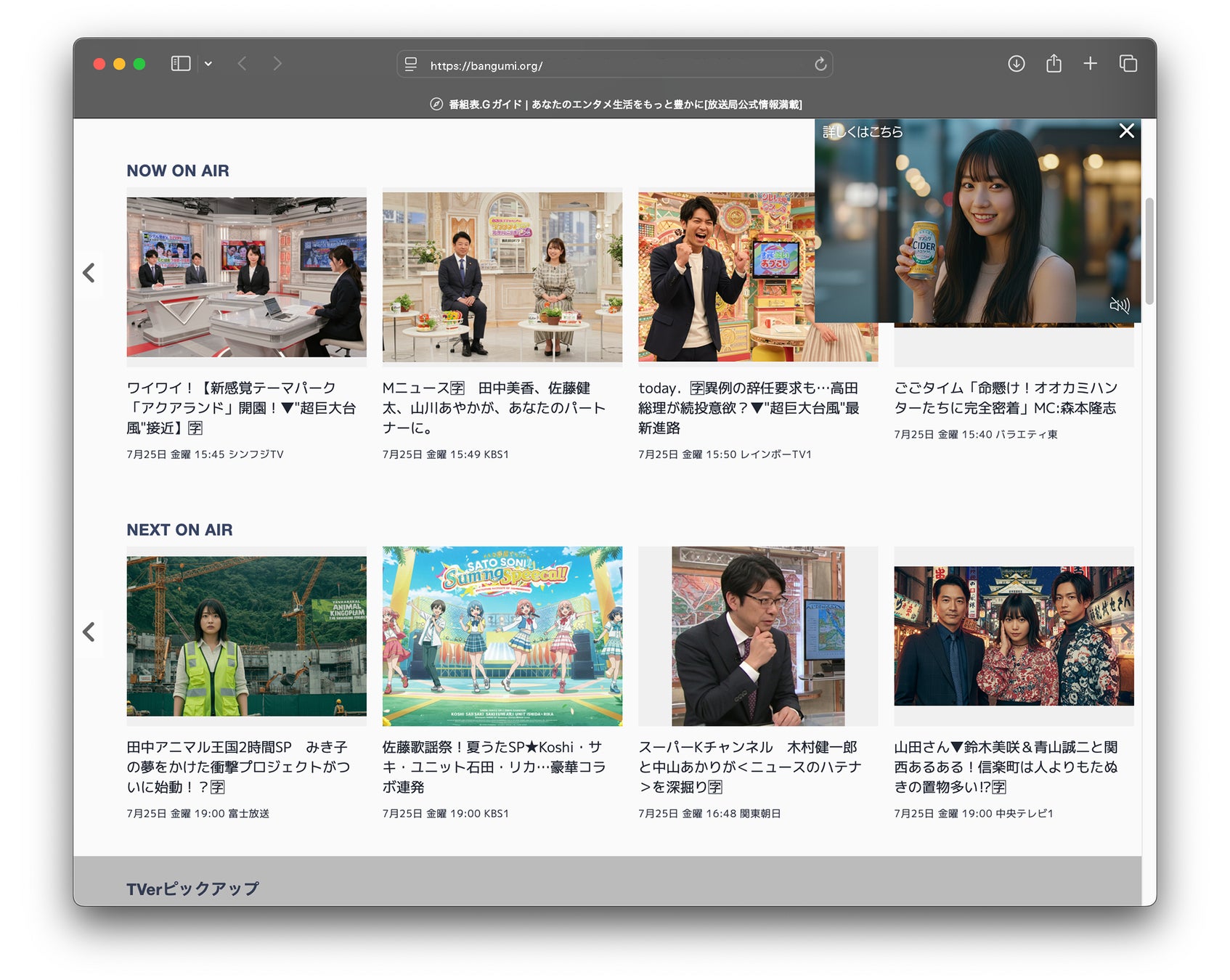 株式会社IPG(本社:港区、代表取締役社長:岡本賢人、以下「IPG」)は、2025年9月より、ウェブブラウザ版の電子番組表サービス「番組表.Gガイド」のホーム画面の最も視認性の高い上部エリアに、新たに動画広告を掲載する機能「TopVideo」を実装しました。