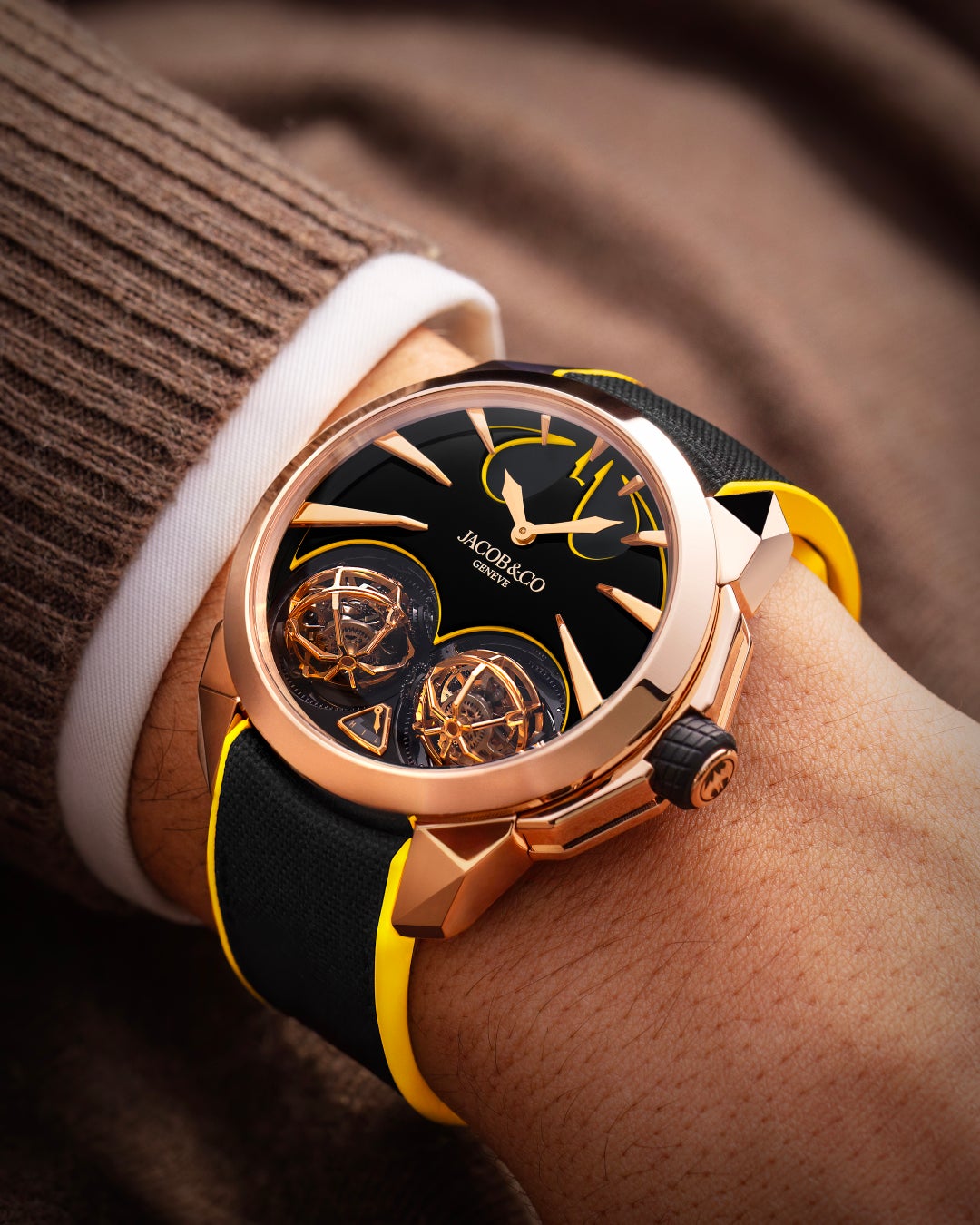 個々の要素が主張しすぎるのではなく、高度なムーブメントと一体化することで、本作はジェイコブ&コーのハイ・コンプリケーションとしての品格を体現しているのです。