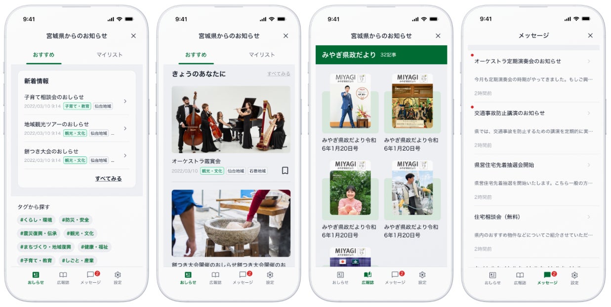 県政情報を発信する広報ツールとしてご活用いただきます。利用いただいた県民の方々からのご意見を参考にしながら、今後もサービスや機能の充実を宮城県様と進めてまいります。
