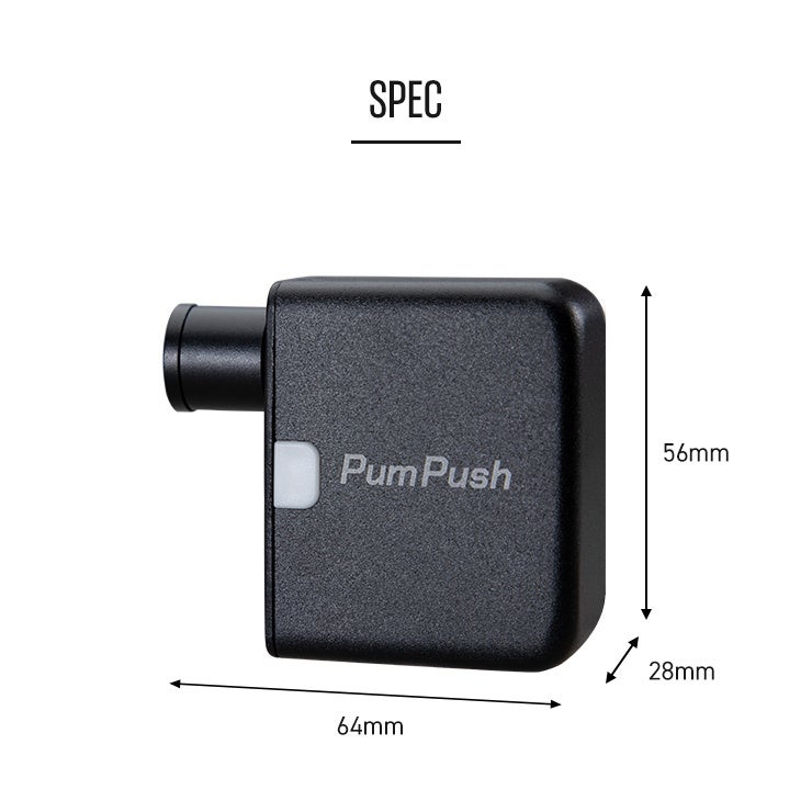 「PumPush(パンプッシュ)」は、超小型・超軽量の自転車用電動空気入れです。約97gの軽量さでありながら、持ち運びが非常に便利です。この電動ポンプは充電式であり、1回の充電でタイヤ2本分の空気を注入することができます。さらに、繰り返し使用することができます。