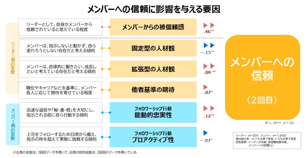 調査結果から、メンバーを信頼するには、リーダーが部下の能力や態度の可変性を信じ、自分の経験的な基準ではなく、メンバーの職位やキャリアといった個々の状況に応じて期待をかけることが鍵となる。