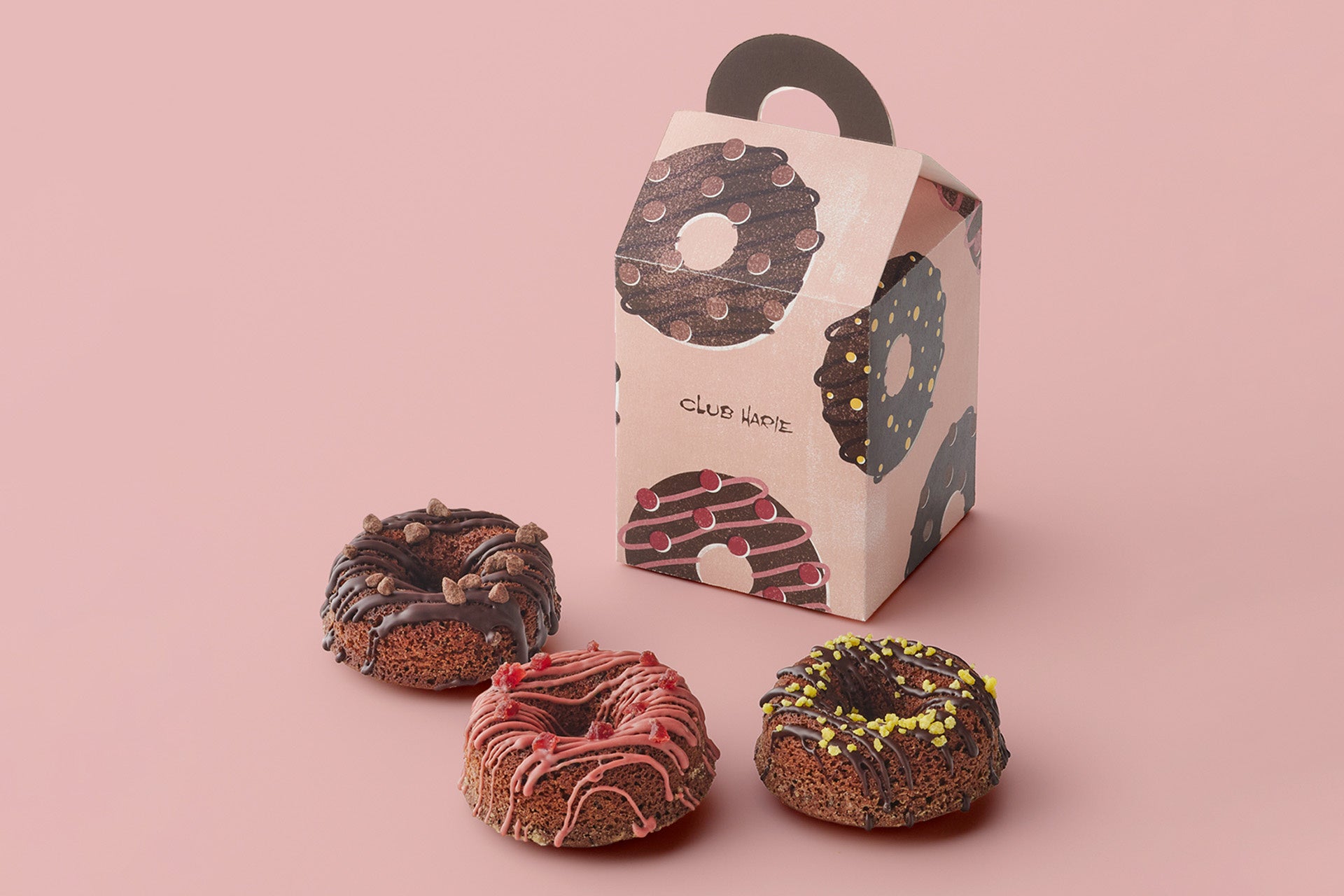 チョコ感たっぷり、POPにデコレーションした3種の味わいの焼きドーナツです。ショコラティエが生地の食感やチョコレートにこだわり、何度も試作を重ねたこだわりのおいしさをお楽しみください。