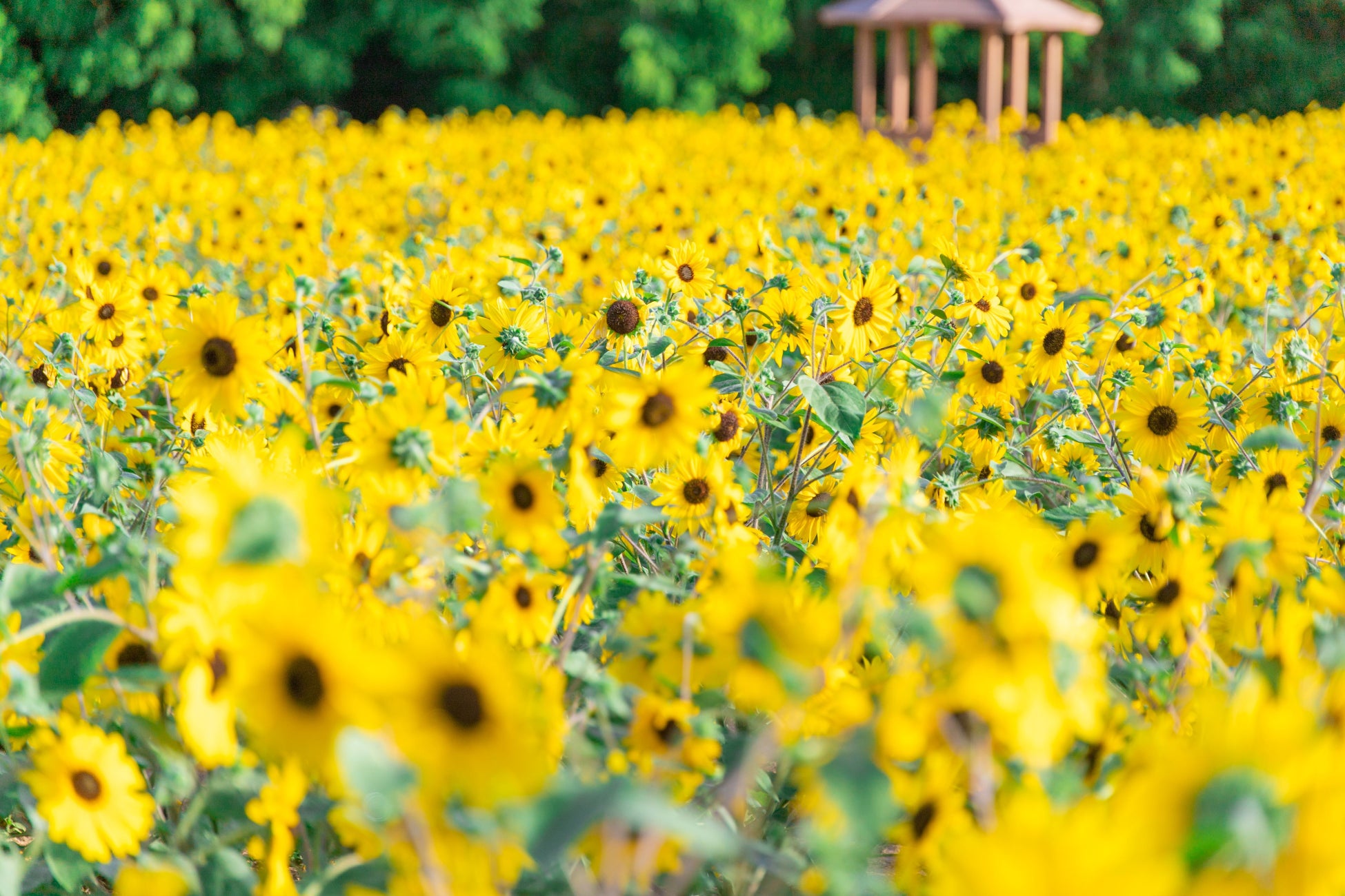 1株から100輪も花が咲く「サンフィニティ」。開花期が長いため、開園中ずっとお楽しみいただけます。です。黄色のビタミンカラーで笑顔いっぱいの写真を撮りましょう。