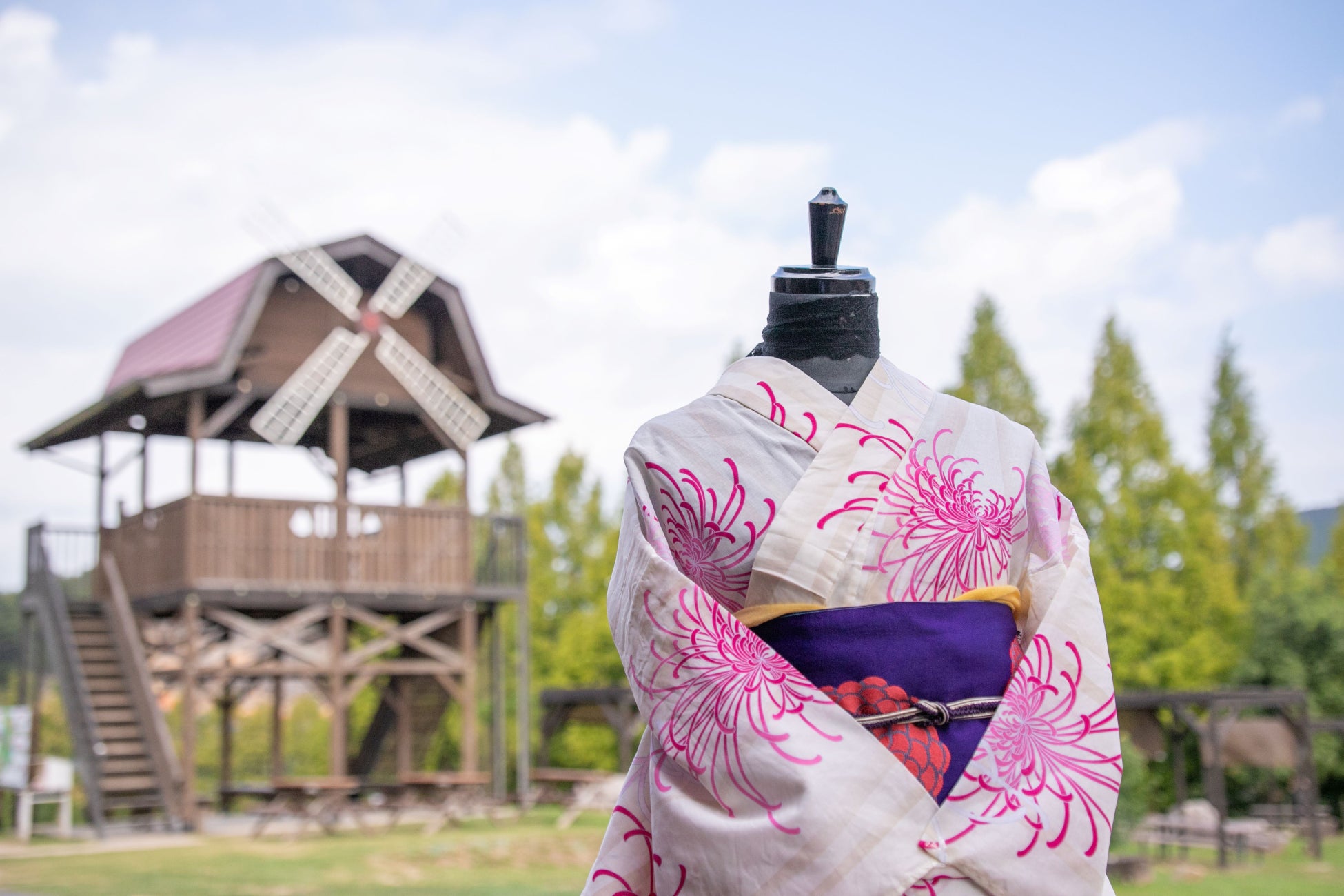 浴衣で園内散策。レンタル浴衣をプロが着付けいたします。浴衣の持ち込みも可能です。