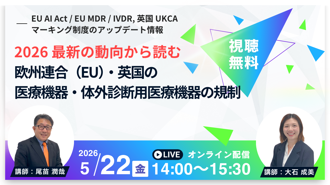 【5月22日QMS無料セミナー】2026最新の動向から読む欧州連合(EU)・英国の医療機器・体外診断用医療機器の規制