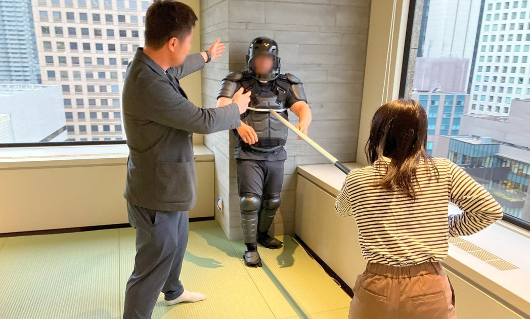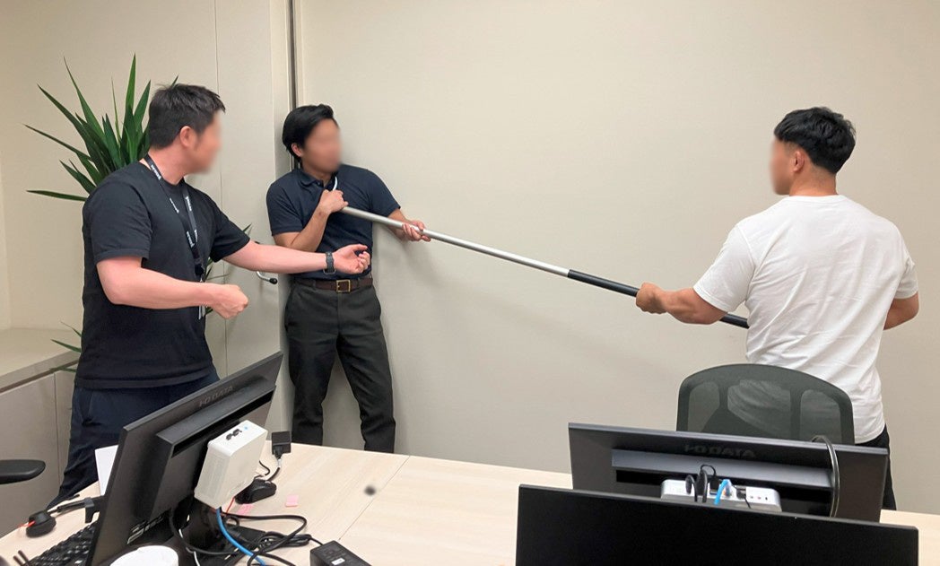 本研修では、店舗で発生するトラブルの傾向や不審者の行動パターン、通報時の警察官の動きまでを網羅し「事件にさせない」ための予防・初動対応を重点的にレクチャーします。また、さすまた等の防犯資機材の適切な使い方や、通報から警察到着までの間に必要な対処法、様々な襲撃パターンを想定した実践訓練の実施により、現場で反応できる“体感型の防犯力”を養成します。