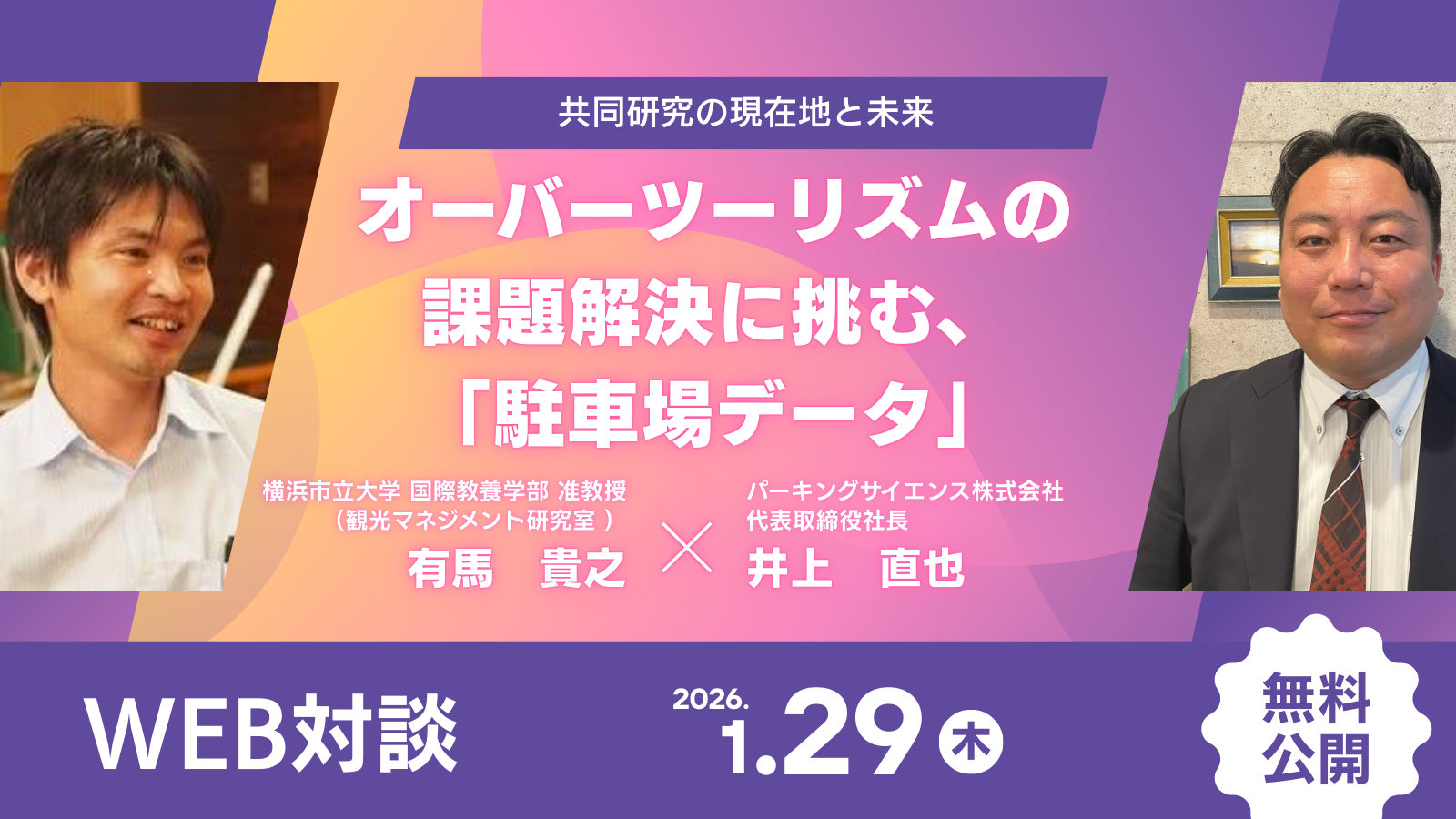 【無料】ポイ活機能付き駐車場検索アプリ「P-Collection/ピーコレクション(以下P-Collection)」と駐車場専用マーケティングシステム「Park-Labo/パークラボ(以下Park-Labo)」を運営する、パーキングサイエンス株式会社(本社:神奈川県藤沢市 代表取締役:井上直也)は、横浜市立大学 国際教養学部 観光マネジメント研究室(有馬貴之ゼミ)と共同で進める「駐車場データと渋滞データを活用した観光地の渋滞緩和に関する研究」について、対談動画をYouTubeにて公開しました。