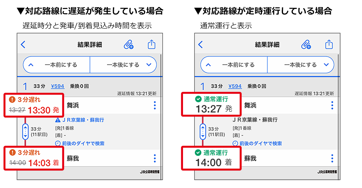 遅延状況を考慮した経路の選択も手間なく簡単になりました!